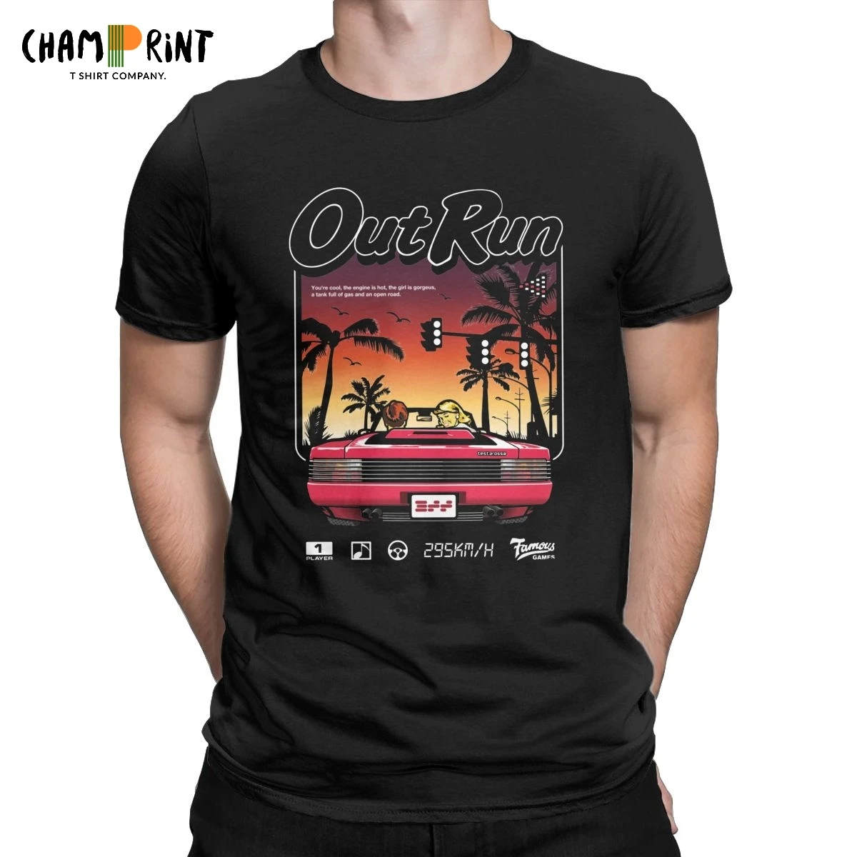Мужская Ретро-футболка с короткими рукавами Out Run 80s, Винтажная футболка из чистого хлопка с круглым вырезом, 6XL
