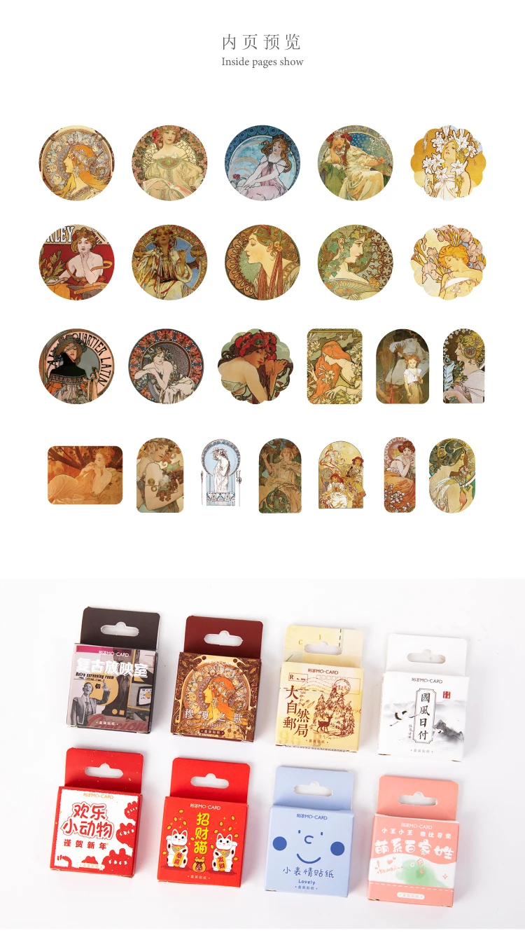 46 шт., Набор наклеек Mucha 44 мм, винтажный мини-постер для творче...