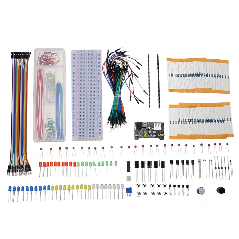 Базовый стартовый набор для электроники с макетной платой, кабелем, резистором, конденсатором светодиодный потенциометром для Arduino