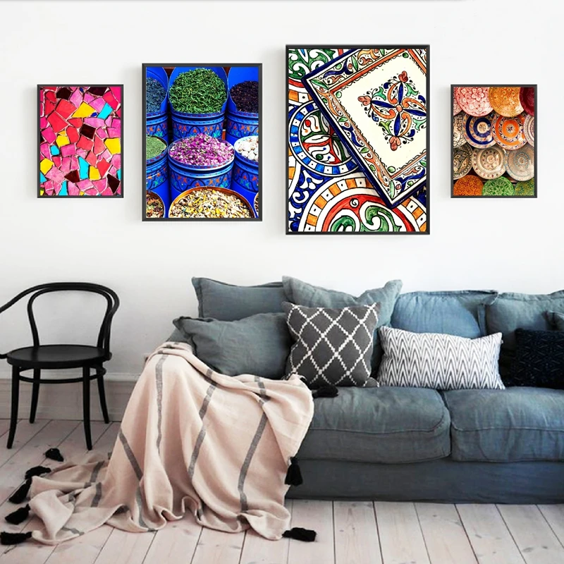 Марокканское украшение, марокканский узор, винтажные красочные постеры и печать, бохо, настенная живопись, холст, путешествия, фотография, Декор