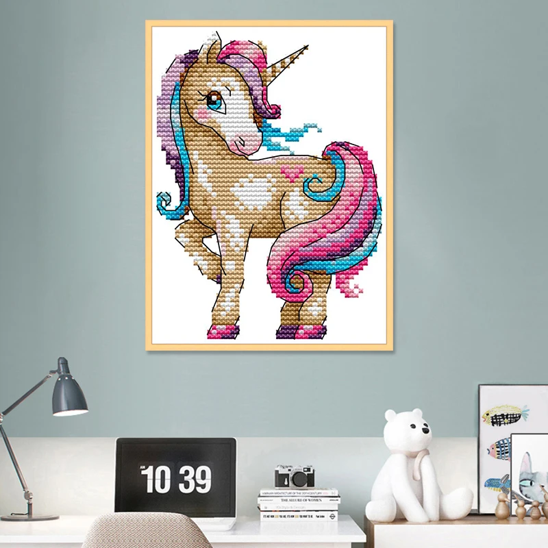 Набор для вышивания с изображением единорога из мультфильма, цветно...