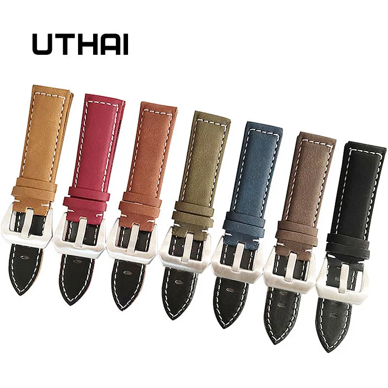 Ремешок для часов UTHAI P12 из натуральной кожи, аксессуары для часов, кожаный браслет, 22 мм 18202224 мм