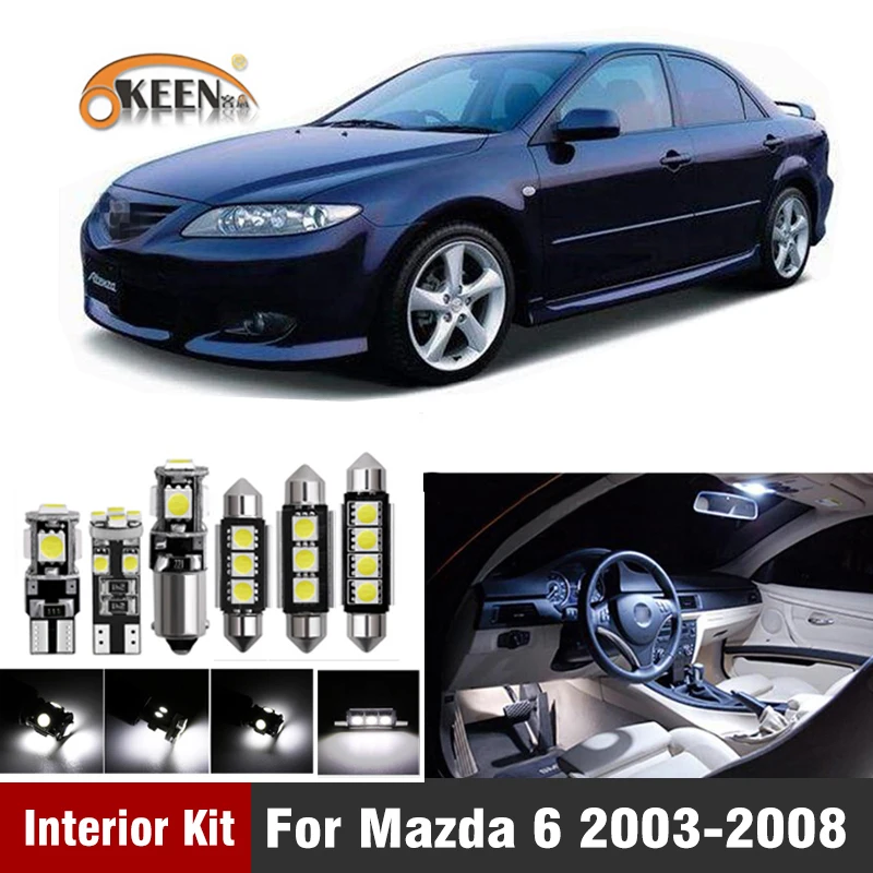 Комплект освещения салона автомобиля Canbus Светодиодная Лампочка, 10 шт., для Mazda 6 2003, 2004, 2005, 2006, 2007, 2008, светодиодный светсветильник льник для багажника