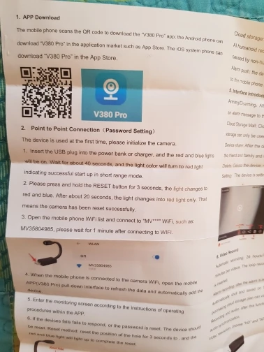 получил, работает. приложение надо загрузить из магазина v380... пройти регистрацию, и привязать устройство. изображение хорошее. есть два режима SD/HD. 480p/720p соответственно. снимок 640х480... ожидаемо. ночной режим есть, подсветки нет. поддерживает карты от 4 до 128 Гб. так написано сам не проверял. прокрутить запись можно, но пока не понял, есть-ли отдельные файлы, как в регистраторе. возможно при извлечении карты они будут. у ксиоми более удобный интерфейс камер, правда то же не у всех. :) за эту цену, эта возможность. планирую использовать в качестве дверного глазка. звездочку не снял за не точность описания, нет 1080р! Нет full HD! только 720р. ну это и не критично. кому надо full HD это не ваша камера. потребляемый ток до 200 мА. можно поставить через повер банк, 2А на 9-10 часов может хватить... удачных покупок.