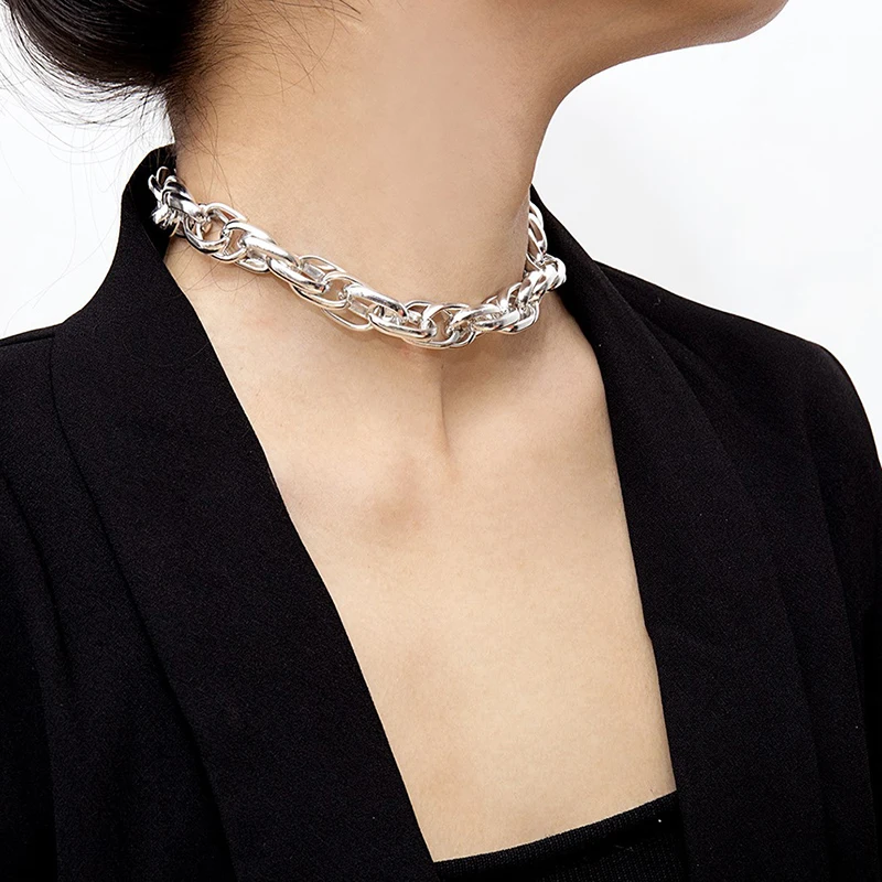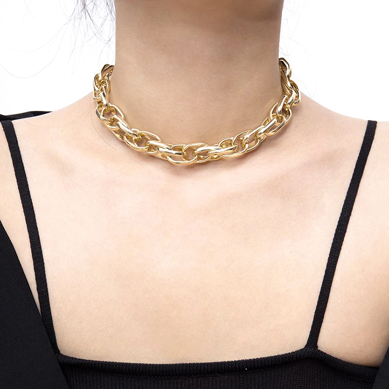 Ожерелье-чокер женское, толстая кубинская цепочка