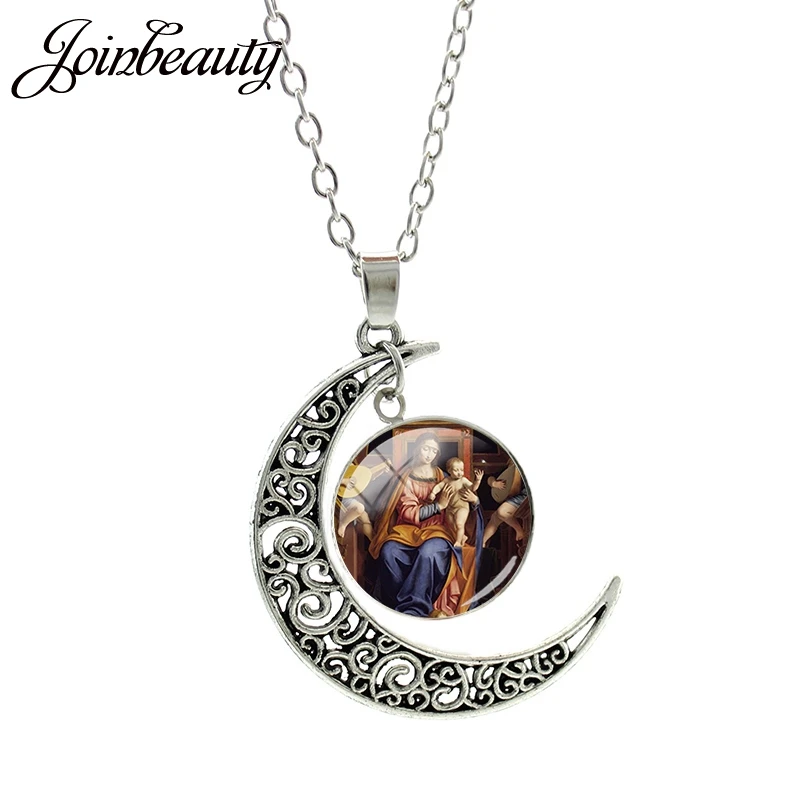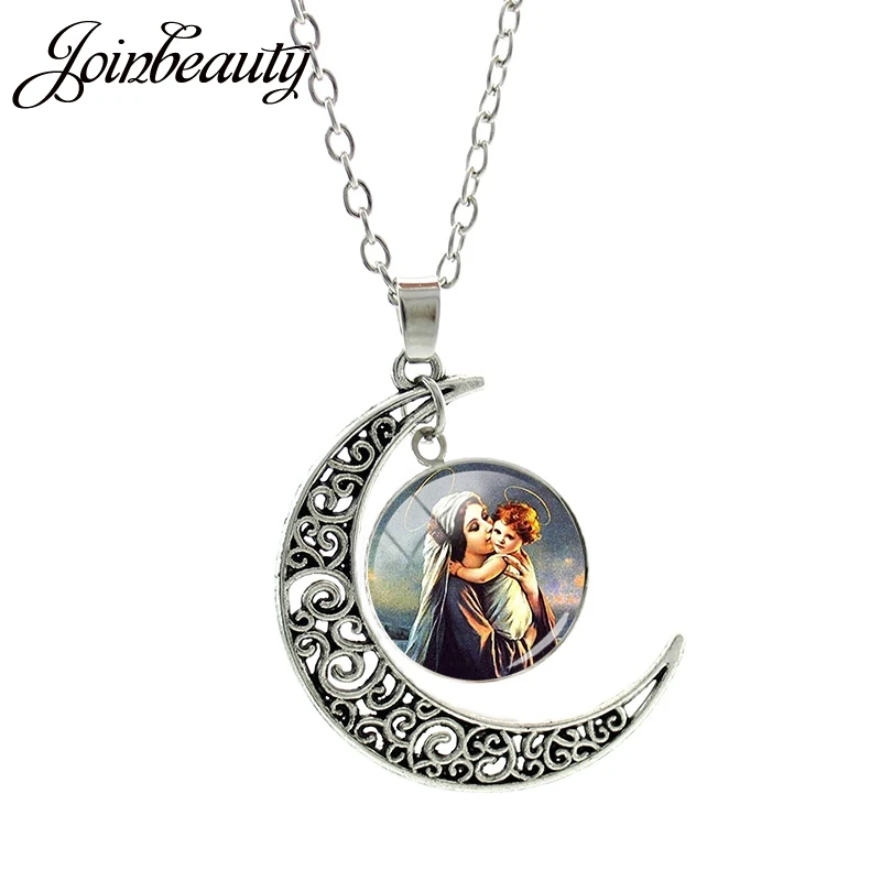 Женское Ожерелье JOINBEAUTY с ангелом, луной, подарок для матери, стеклянный лист, купол, бусины, кулон, массивное ожерелье, ювелирные изделия MY01