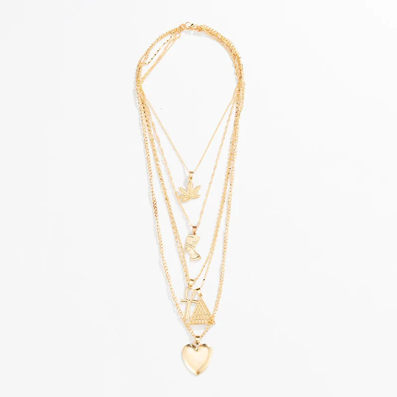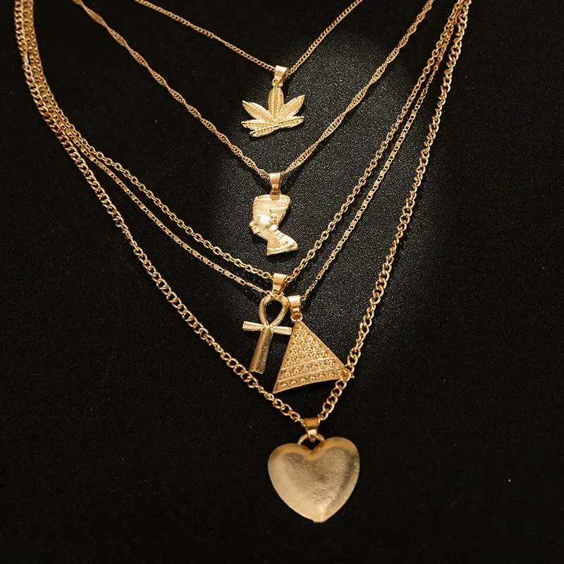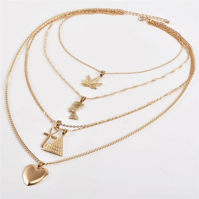 Винтажное женское золотое ожерелье, сердце, крест, пирамида, старинный египетский фараон, многослойное ожерелье с подвеской, цепочка, чокер, ювелирные изделия