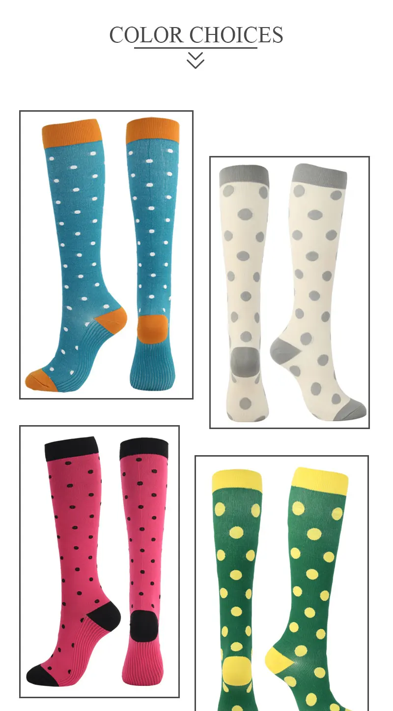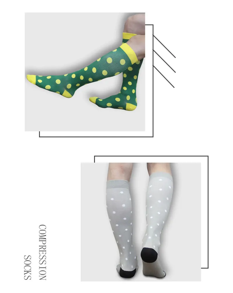 Осень-зима 2020, компрессионные чулки унисекс, нейлоновые уличные спортивные длинные носки для бега в горошек для предотвращения варикозного расширения вен