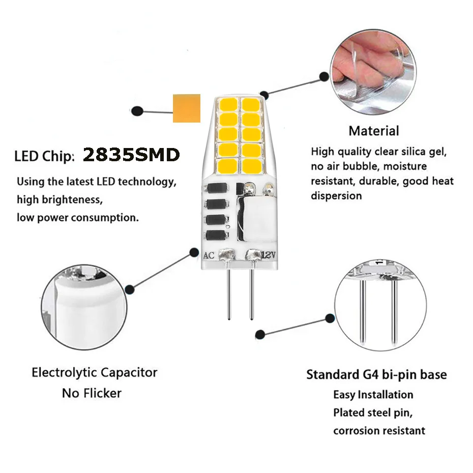 Двухконтактная Светодиодная лампа G4, ее можно легко установить по сравнению с обычными галогенными лампами.