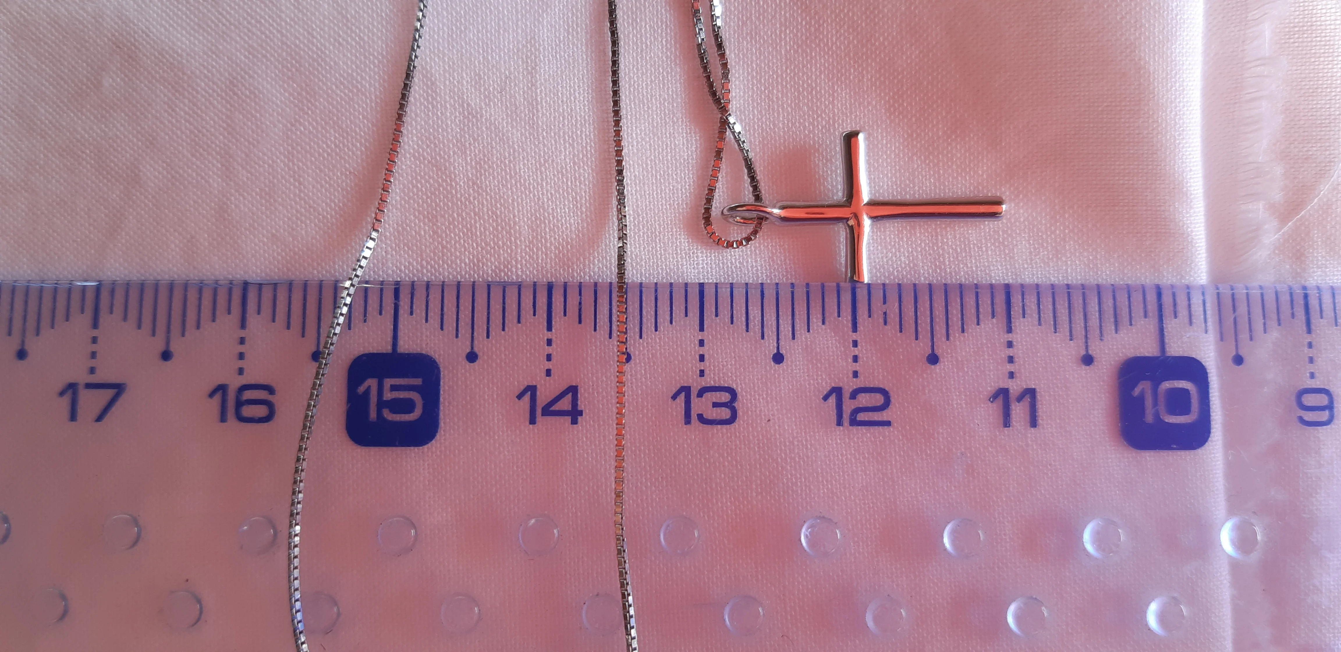 Очень красивый крест, трезвый и элегантный. Видимо цепочка крест хорош в серебре, нет аллергической реакции на данный момент. Но цепь в порядке, всего половина миллиметра! Я даже не знал, что такое тонкость может быть с винитовой сеткой! Вдруг я не рекомендую это для ребенка, слишком хрупкий. И со своей стороны я не сплю с ним, чтобы не повредить его. Крест = около 1,9 см в высоту. На фото я ношу цепочку как можно короче. Поставляется быстро в красивой картонной коробке и с чистящей салфеткой.