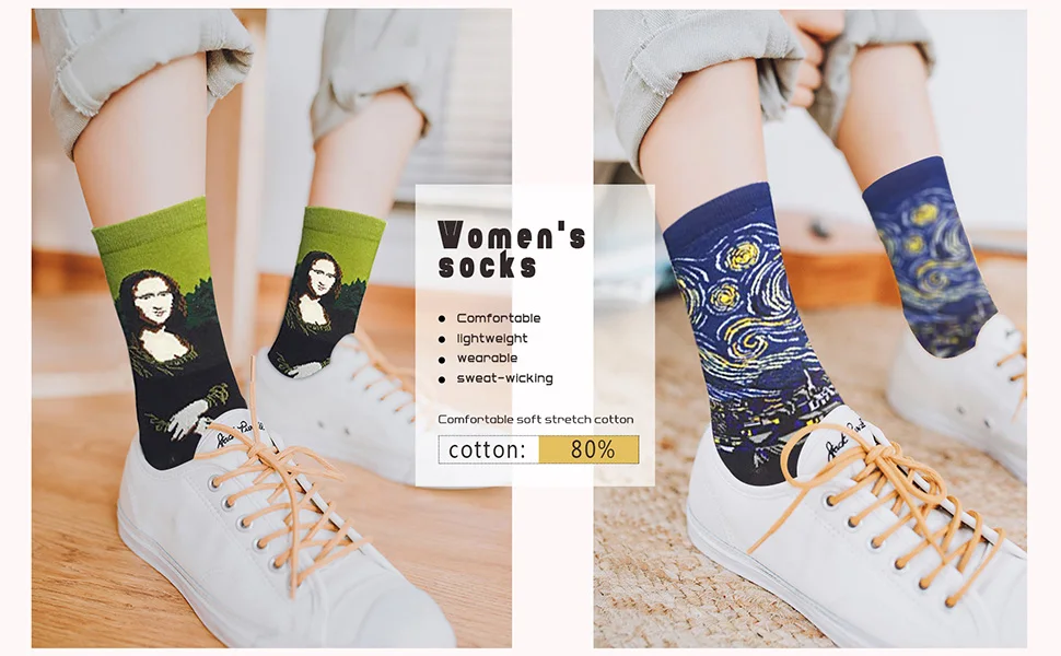 Носки женские осенне-зимние, с изображением Ван Гога, серия масляной живописи