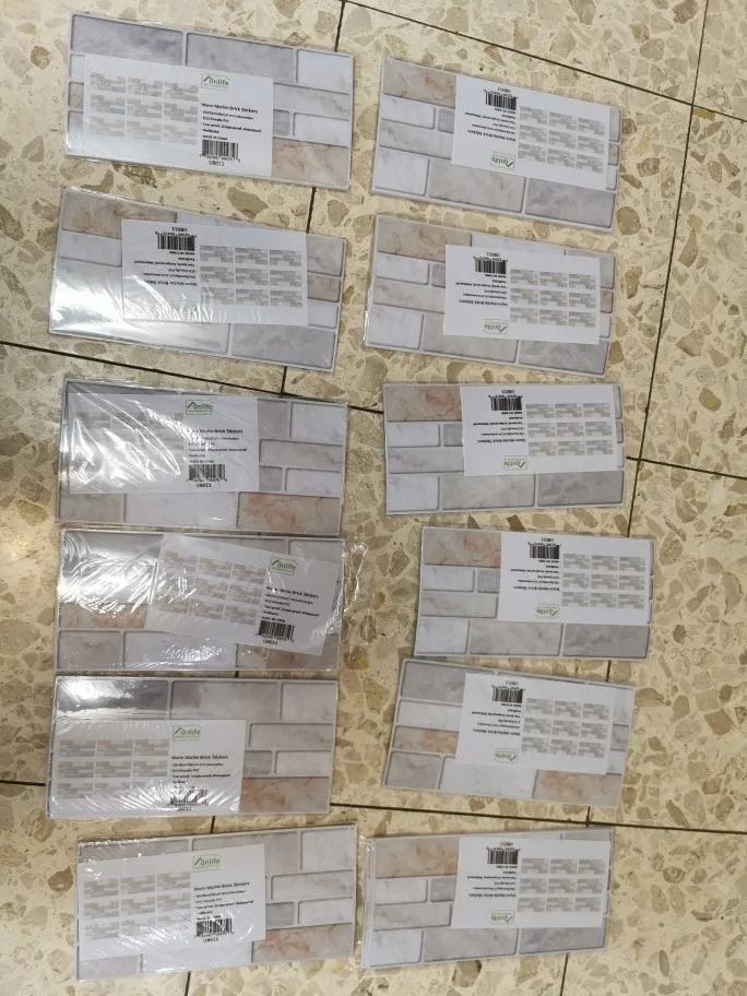 Совсем не то что ожидалось. На картинке продавца совершенно иное изображение. Пришло 3упаковки по 9 шт. Клёвая основа плохая, возможно на кафель, но на стену не клеится. Ну и ожидала кирпичики разного цвета, а пришли кирпичики с узображением маленьких кирпичиков.