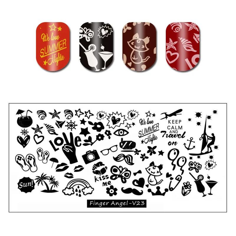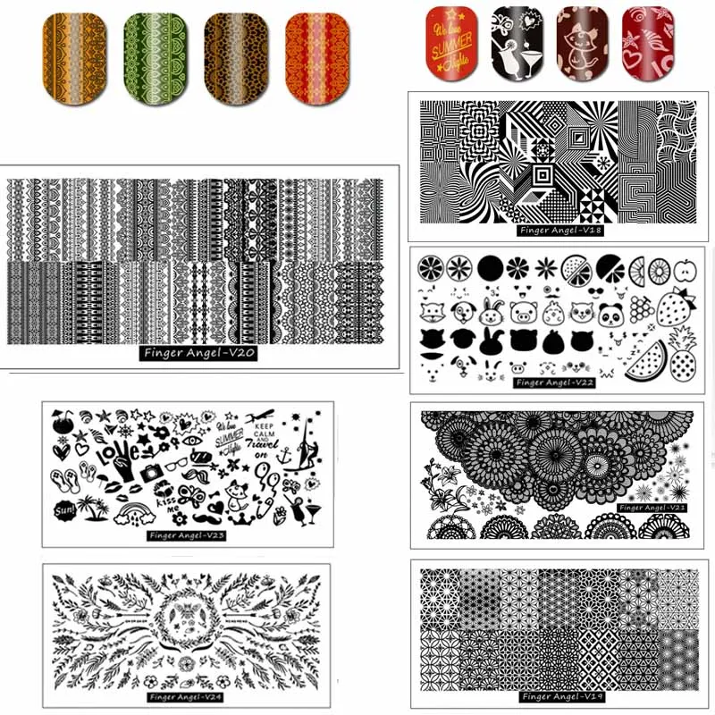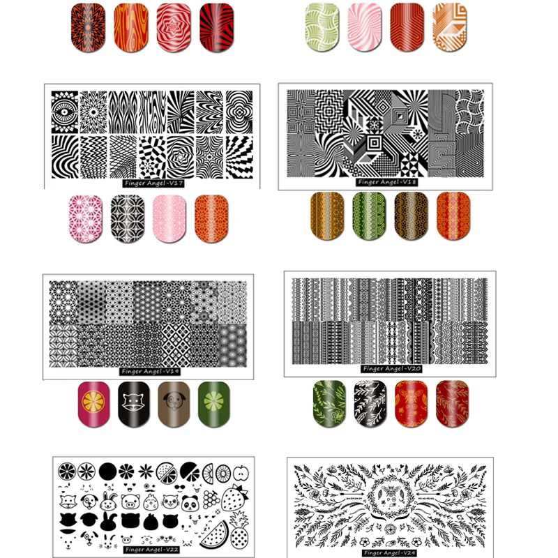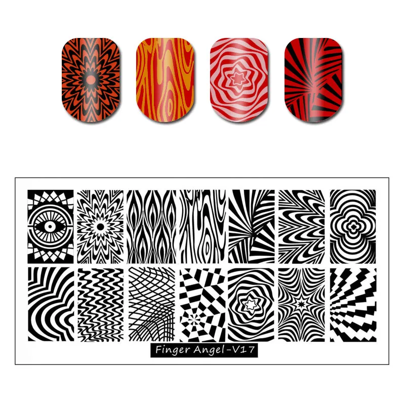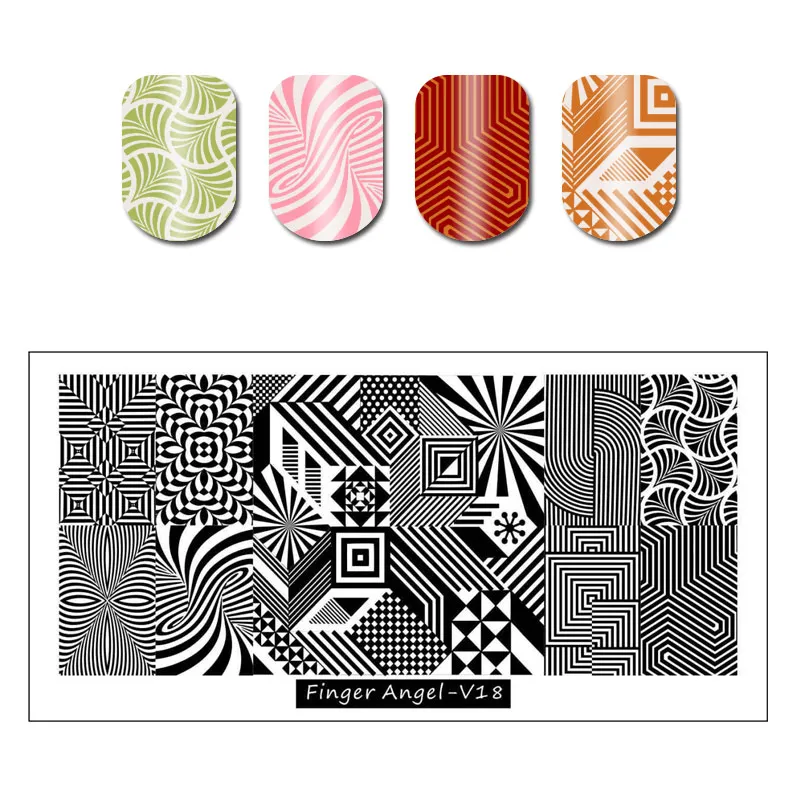 1 шт., круглыепрямоугольные шаблоны для пластины для штамповки ногтей с изображением животныхцветовполосатых волнштамп для дизайна ногтей