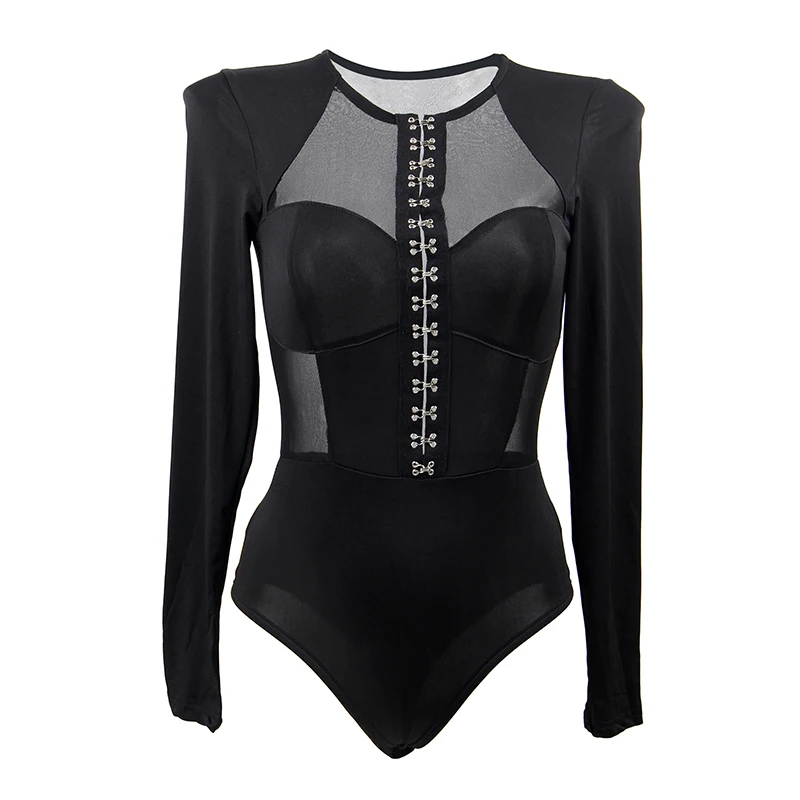 Женское боди с длинным рукавом, Кружевное боди на пуговицах и V-образным вырезом, комбинезон размера XXXL, Клубная одежда, R80753