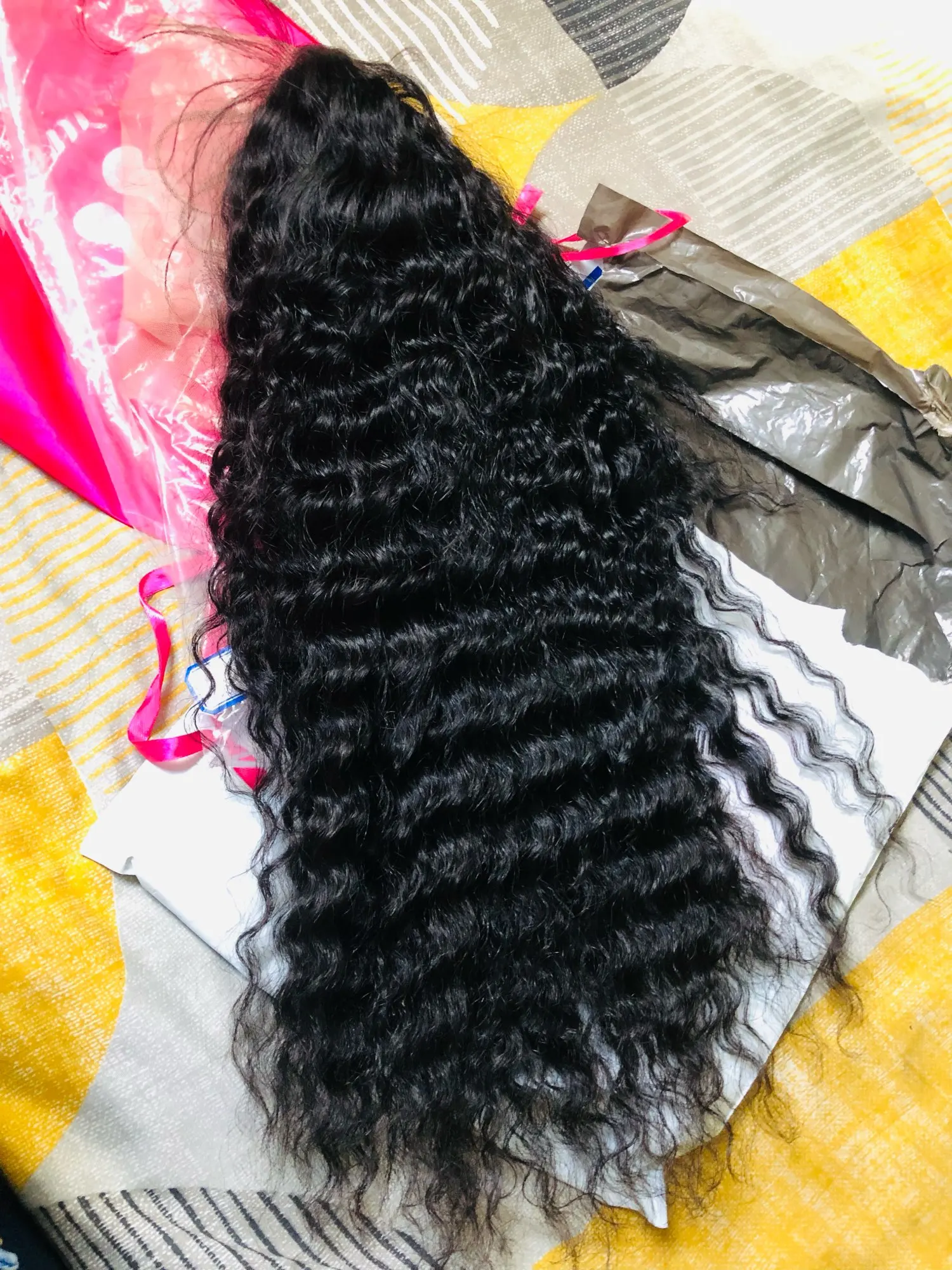 Очень нравится этот парик, он верен по длине и очень толстый. Линяет немного, но это ожидается с вьющиеся волосы. Мой стилист волос сказал что шнурок был большим для работы с, Дефо порекомендовал.