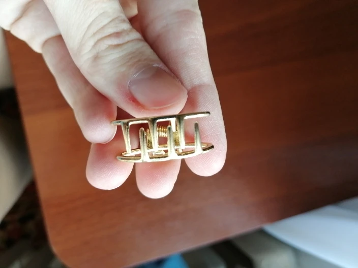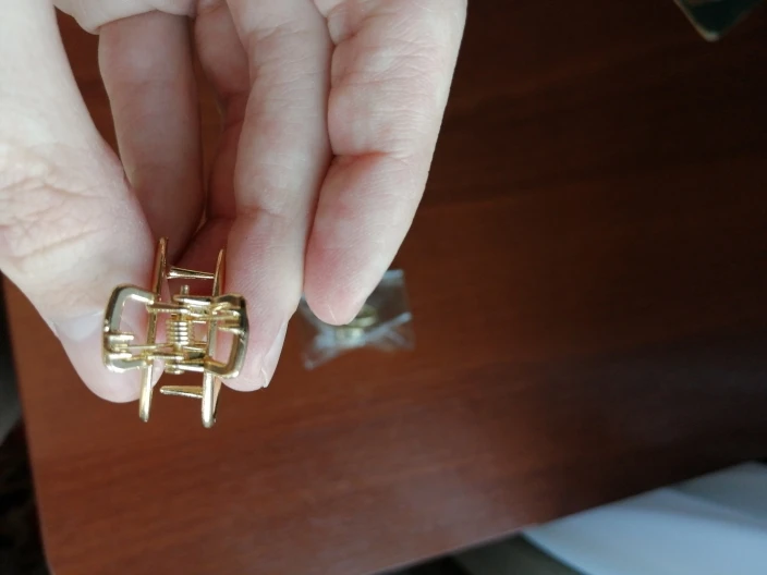 отличный крабик. маленького размера, как и написано в описании. на удивление железный, окрашенный в золотой цвет. хотя я думала что будет пластиковый.