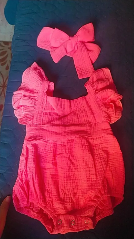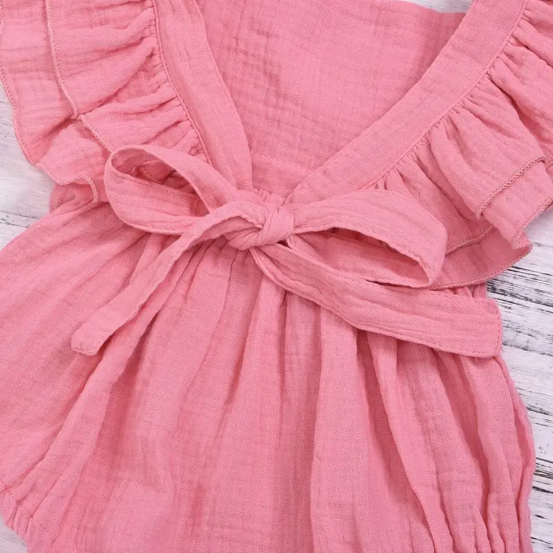Хлопковая одежда для маленьких девочек Летний комбинезон для новорожденных с рюшами и детский комбинезон с повязкой-бантом