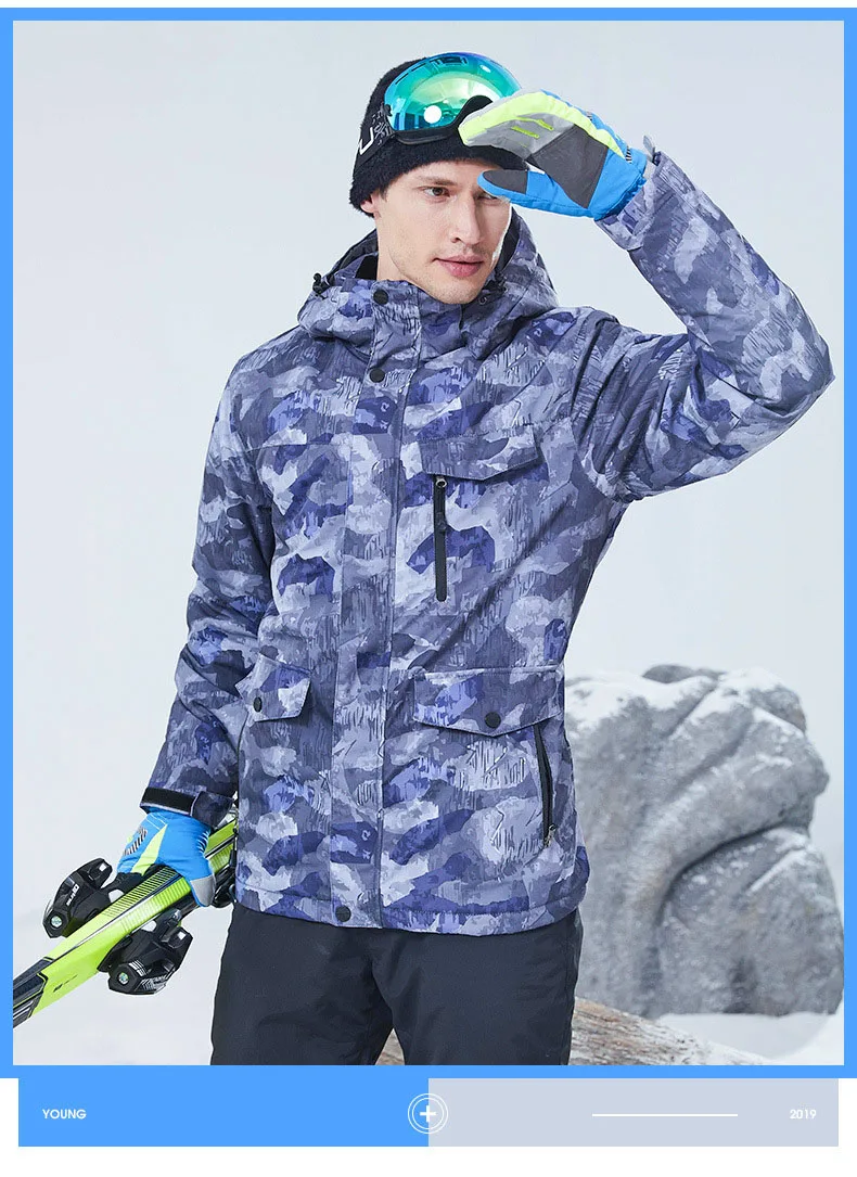 Новая мужская лыжная куртка, зимнее теплое ветрозащитное водонепроницаемое уличное Спортивное сноубординговое камуфляжное лыжное пальто, зимние куртки для мужчин