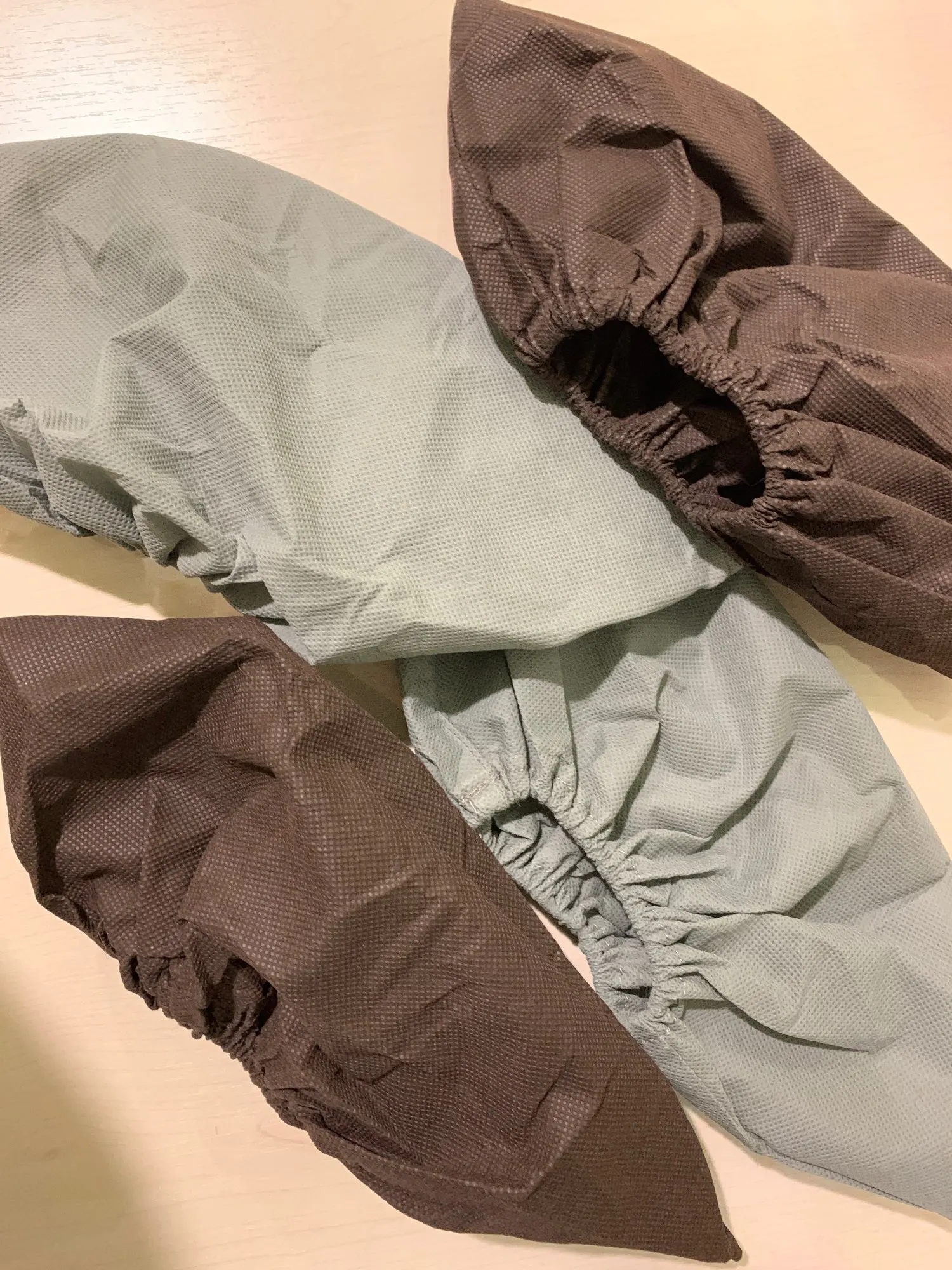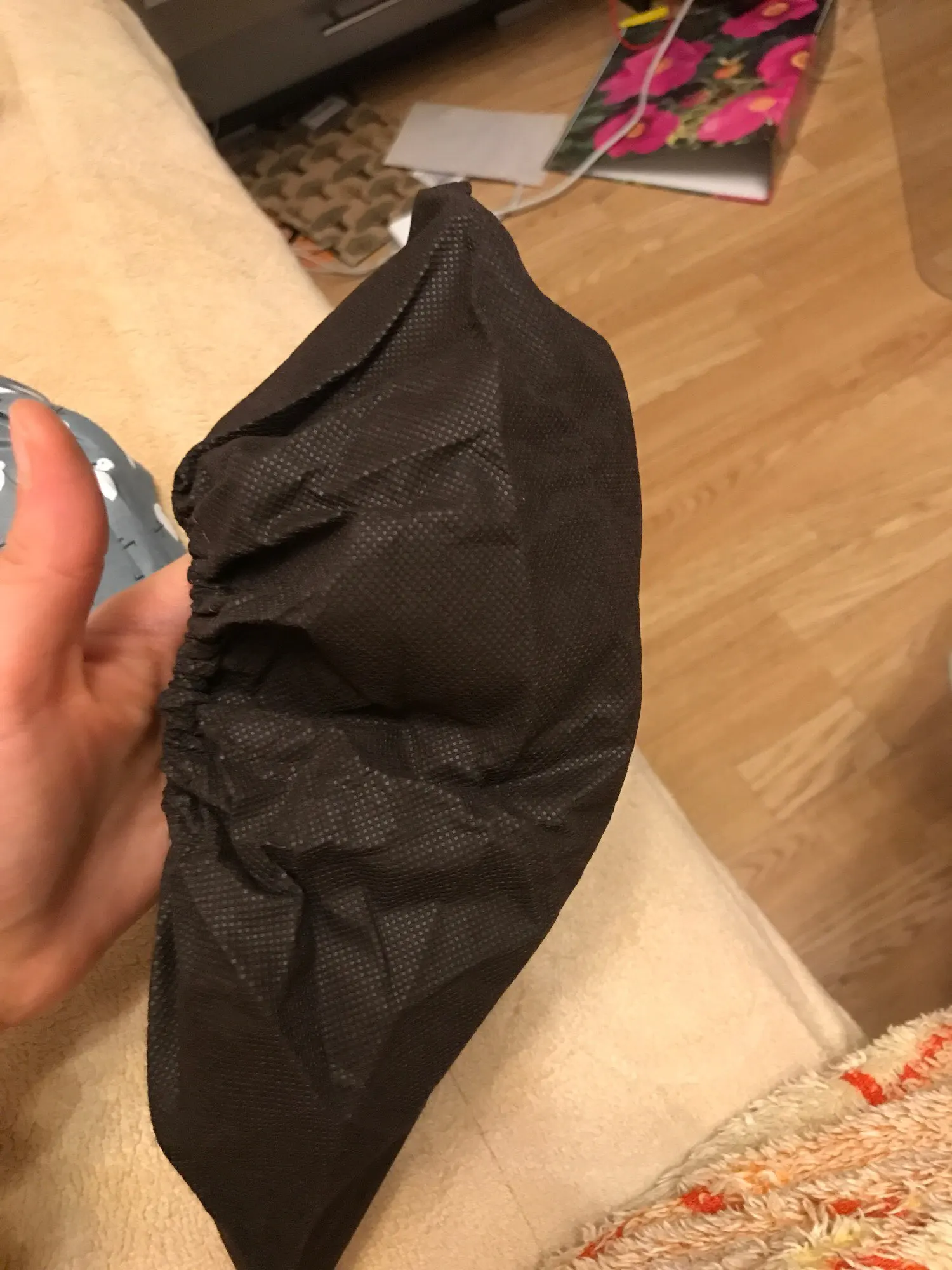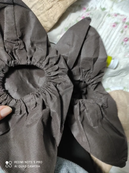 Бахилы из материала, который промокает, использовать лучше только в сухую погоду. Края всех швов необработаны, от этого сильно сыпятся. После двух стирок руками распушились так, что появилась дырка. В общем не рекомендую, лучше заплатить побольше и взять с чехлом и лучшего качества.
