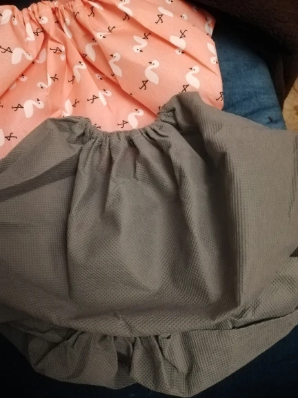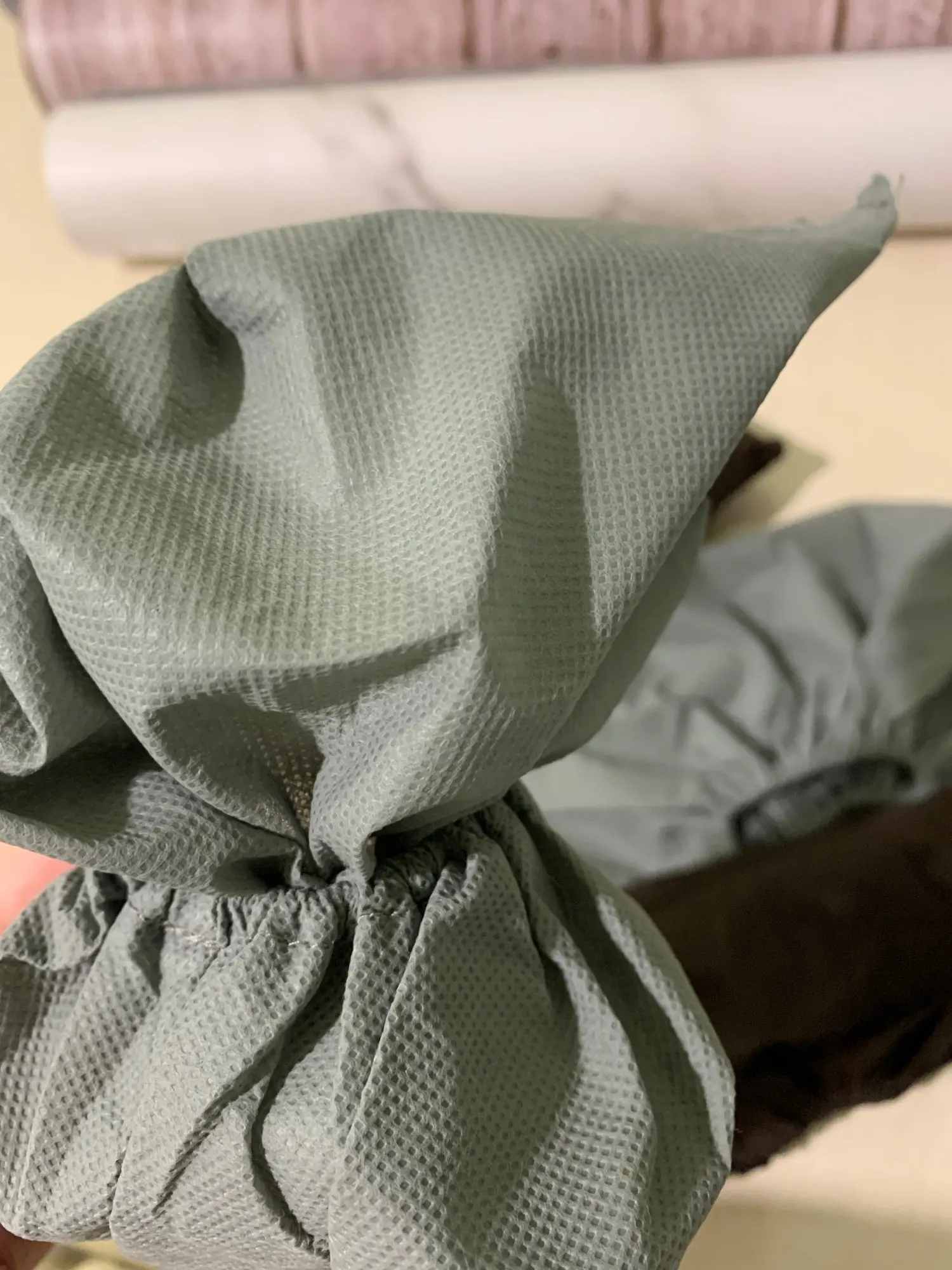 Я ожидала, что сделаны будут из непоомокаемой плащевки. А они сделаны из ткани типа ткани для масок только очень плотной (ещё сумки из таких делают). А так все отлично