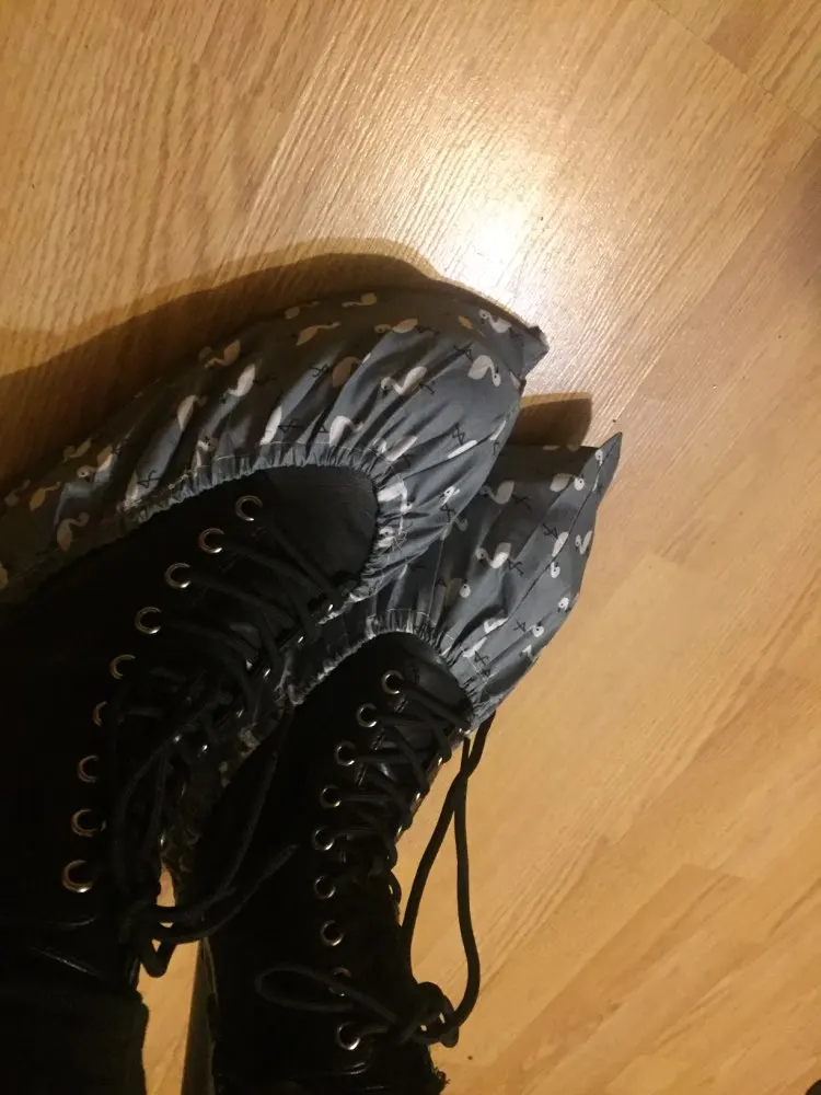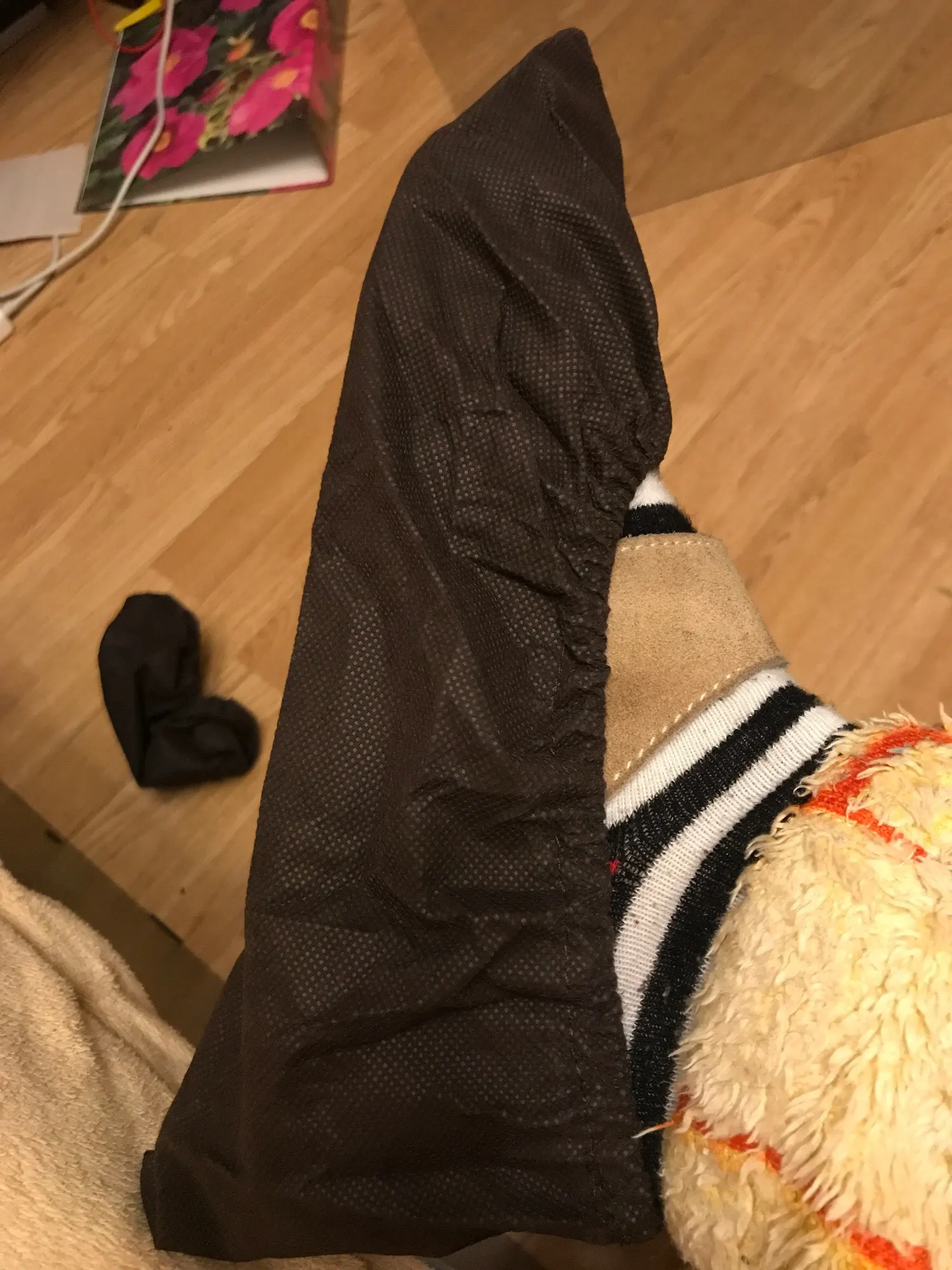 Красивые бахилы. На самом деле до 38 взрослого размера растягиваются. Есть минус: промокают, но грязь не проводит. Чехла нет жалко, потом приходится в сумку грязные складывать