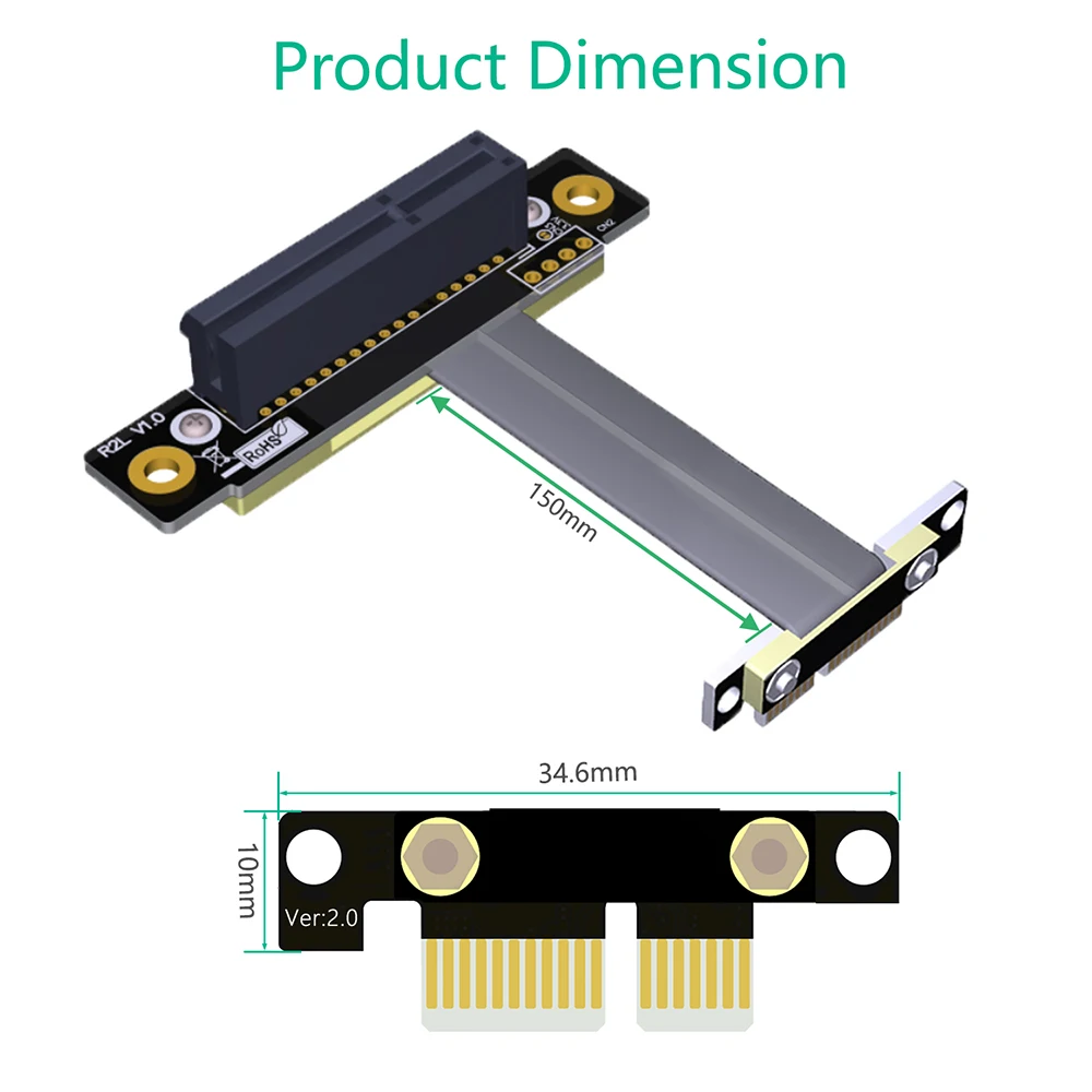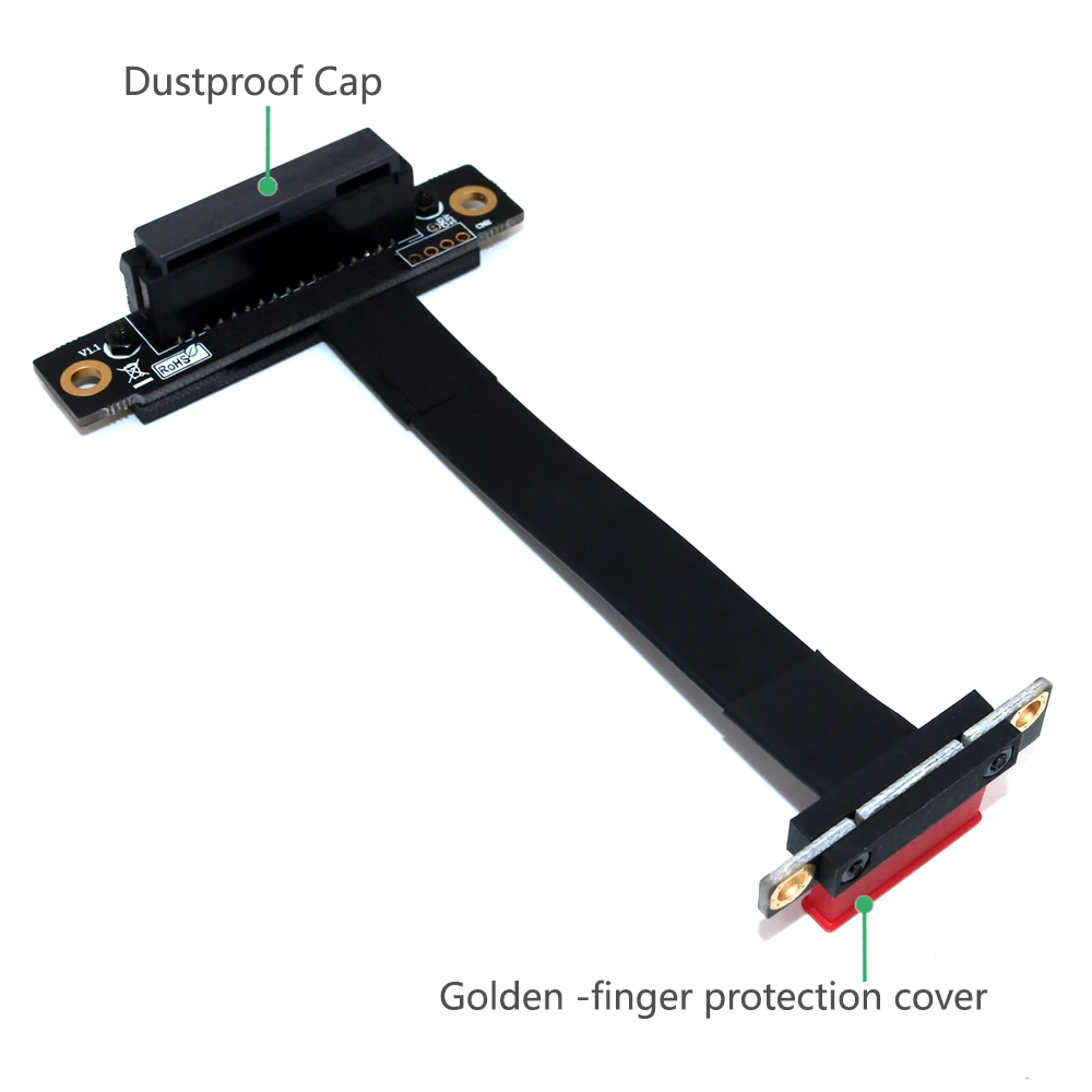 Параметры1. Поддерживает высокоскоростные карты PCI-E 1X, 4X,8X и 16x, но работают только со скоростью 1X.2. Новый дизайн с двойным вертикальным направлением 90 градусов для карты PCI-E3. Общая длина: 17 см, длина кабеля: 15 см4. Высокоскоростной гибкий кабель предназначен для шасси 1U,2U и ATX/BTX5. Используйте высококачественный гибкий кабель, который очень мягкий и компактный.6. Легко устанавливается и не требует мягкого драйвера.7. Золотистая Защитная крышка для пальцев и Пыленепроницаемая конструкция.8. Опытный дизайн и прочный материал для высокой частоты и низкого затухания.9. PCB-пеленаются и фиксируются болтами и гайкой для предотвращения разрыва и короткого замыкания для PCB-кабеля паяльные точки.10. Стабильный PCIe Gen3 8 Гбит/с или выше с высококачественным осевым кабелем.