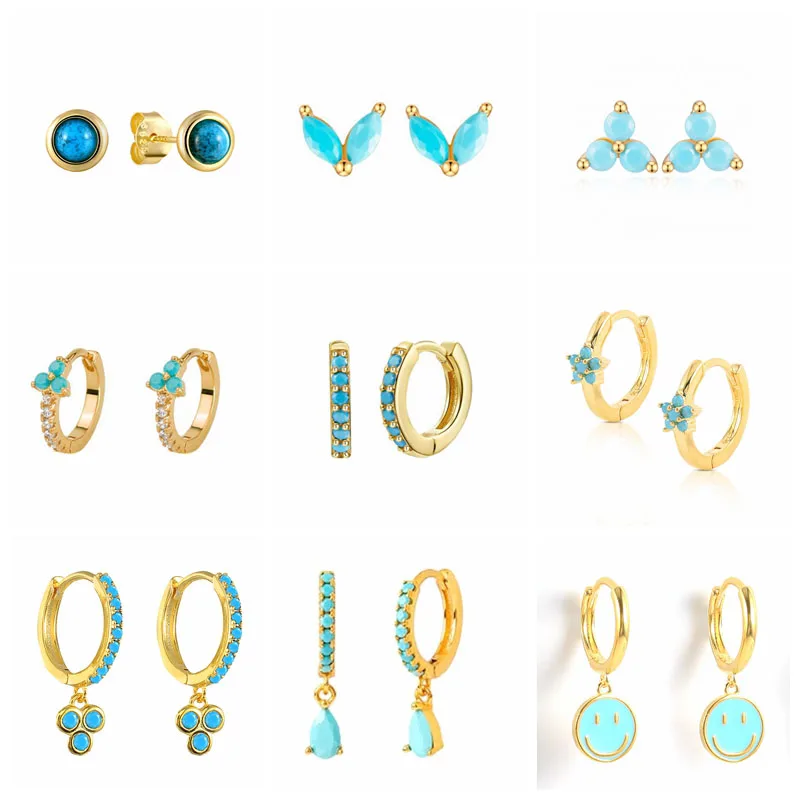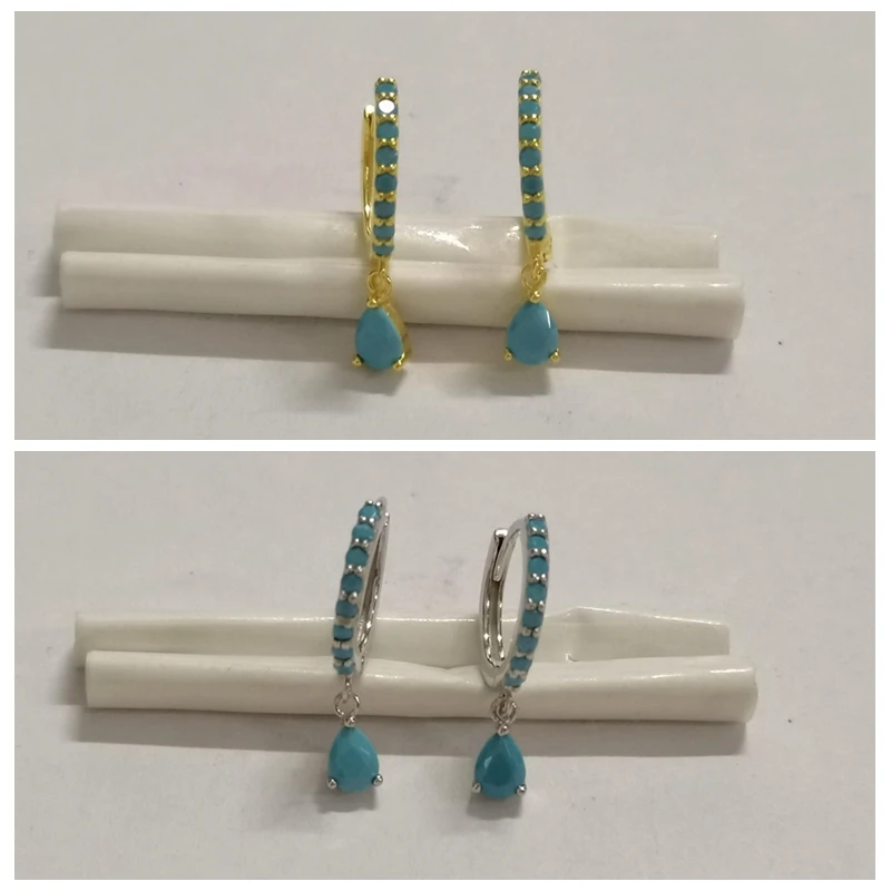 Серьги-гвоздики женские из серебра 2021 пробы, бирюзовый камень пробы, 925