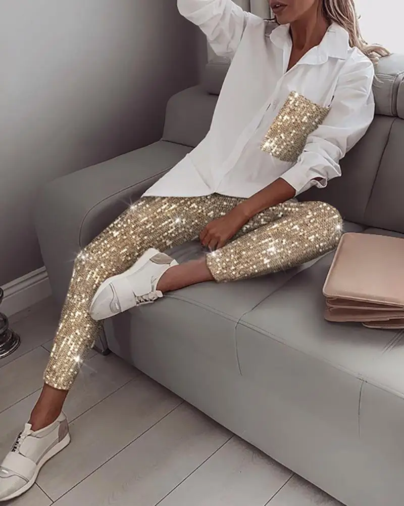 Женская рубашка с длинным рукавом и Блестящие Брюки