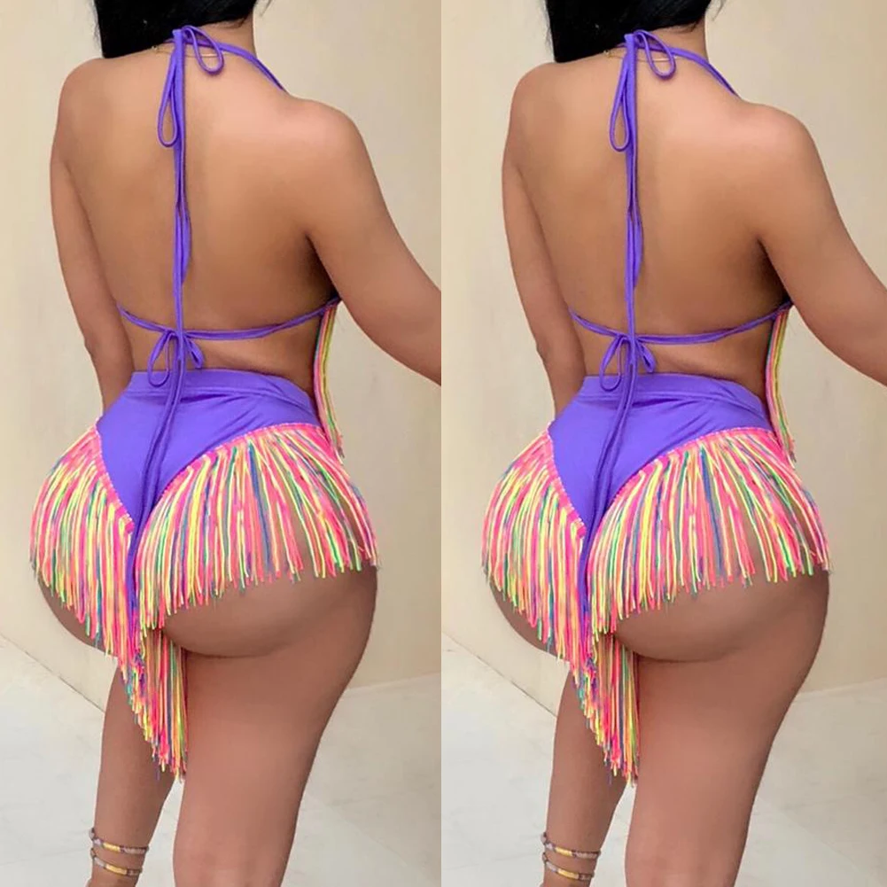 Женский раздельный купальник с бахромой, бикини с лямкой на шее и в...