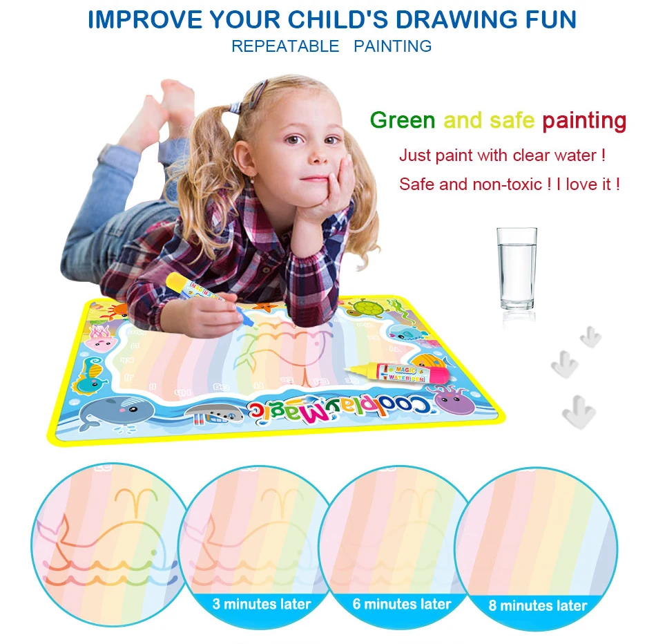 Детский волшебный водный коврик для рисования и 2 ручки, игрушки, м...