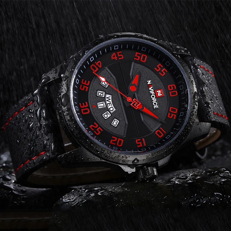 NAVIFORCE спортивные часы Для мужчин кожаный ремешок Водонепроницае...