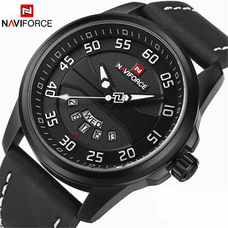 NAVIFORCE модные брендовые мужские часы, повседневные кожаные Кварцевые аналоговые наручные часы, водонепроницаемые автоматические часы с датой недели, мужские часы