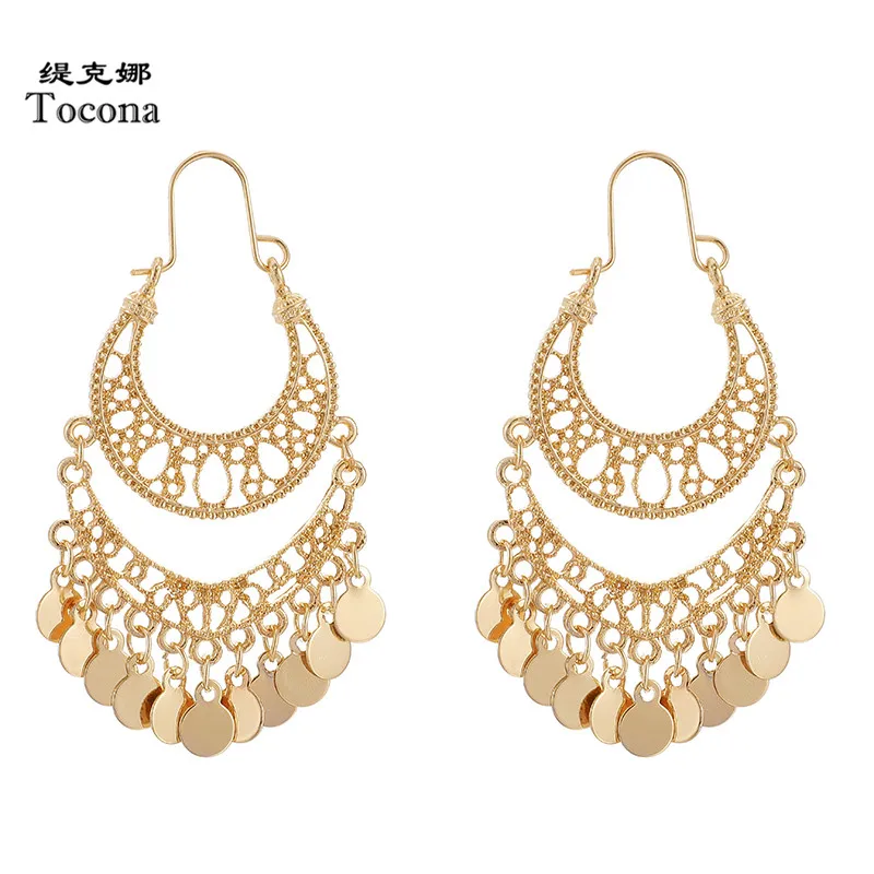 Tocona роскошные вафельные висячие серьги с кисточками для женщин полые геометрические панк Подвеска из легированной стали серьги ювелирные изделия аксессуары 9199