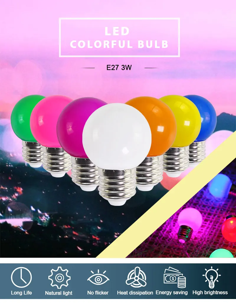 Светодиодная лампа E27 RGB, 10 шт., 3 Вт, цветная лампочка, светодиодный светильник SMD 2835, лампа для домашнего декора, 220 В перем. Тока, круглые лампы