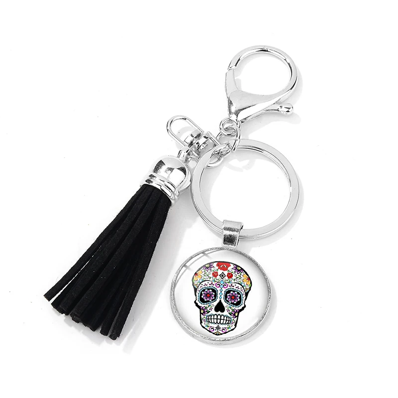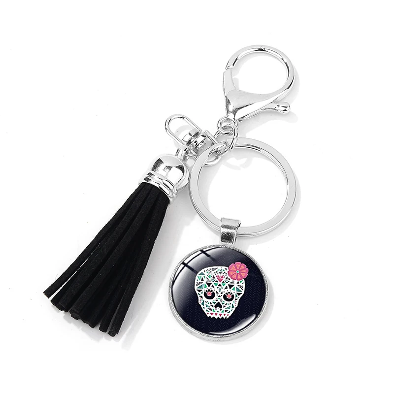 Обувь в стиле панк; С изображением сахарного черепа брелок мексиканский День мертвых тема стеклянный купол кожаный брелок для ключей с кисточкой ручной работы сумка Llaveros