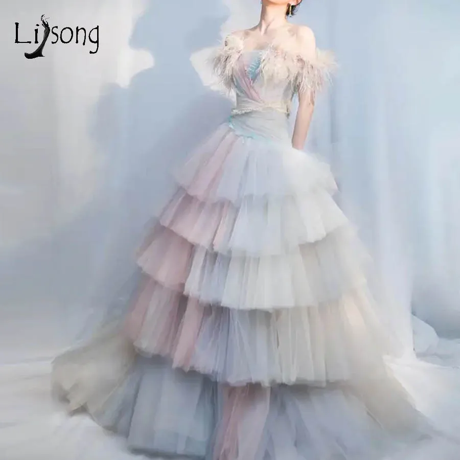 Красивые Красочные пышные юбки-пачки с искусственными перьями, женское платье для выпускного вечера, вечерние платья