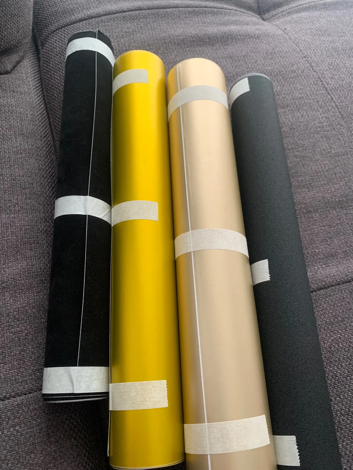 Заказывал 11 наименований. Продавец науярил все в один рулон и пытался их куда-то засунуть. Прислал только 9 наименований, засада. Подал на спор, деньги вернули только за 1 недостающий предмет. Клеить пока не пробовал. На ощупь приятно. Судя по подложке от разных производителей. Красный и оранжевый с неприятным запахом.