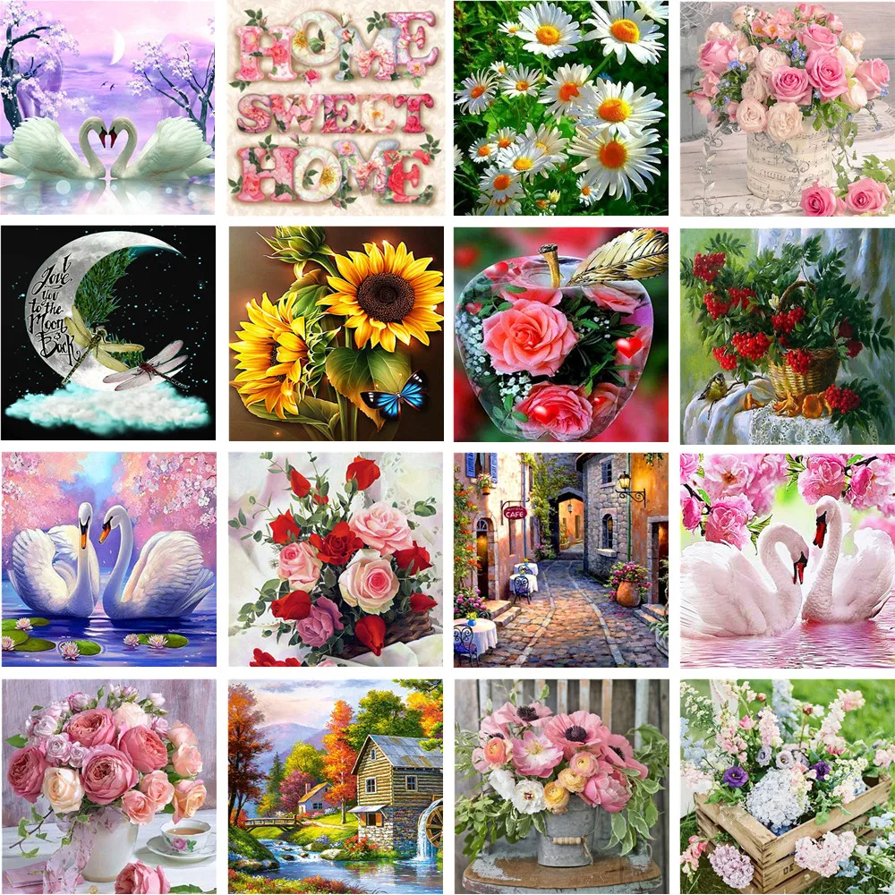 5D сделай сам, круглая алмазная живопись, вышивка крестиком, алмазная вышивка, Цветочный пейзаж, полная Алмазная картина