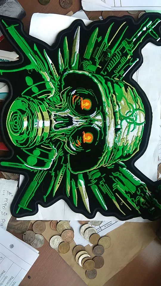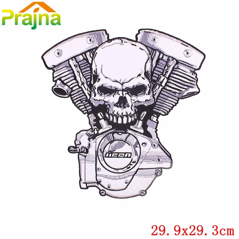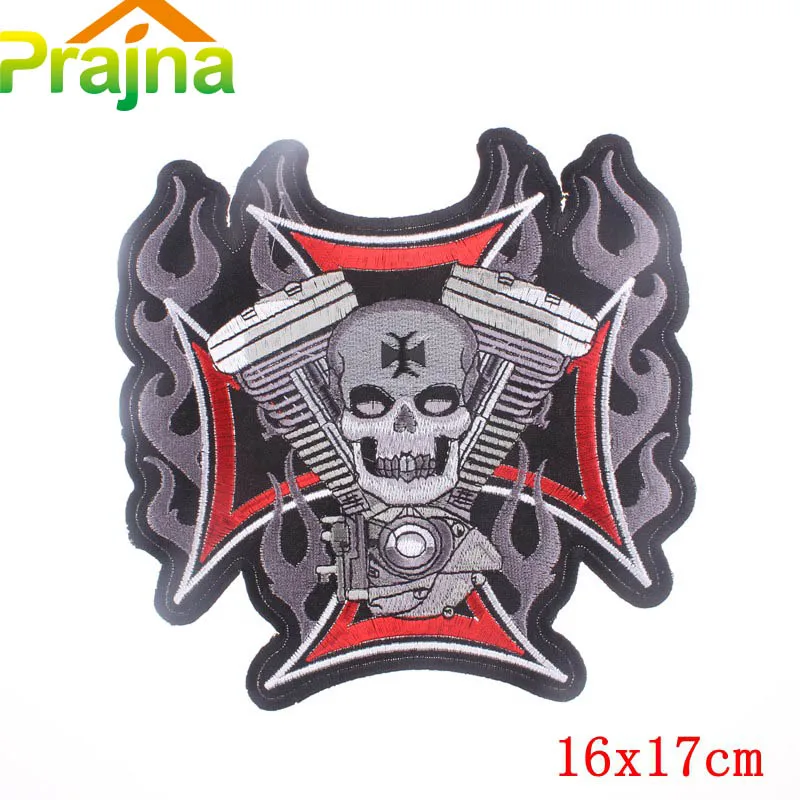 Нашивка Pulaqi в стиле панк, с большим черепом, мотоциклетная, вышитая утюгом нашивки с полосками, для одежды, рок, байкеров, хиппи, аппликация на спине куртки