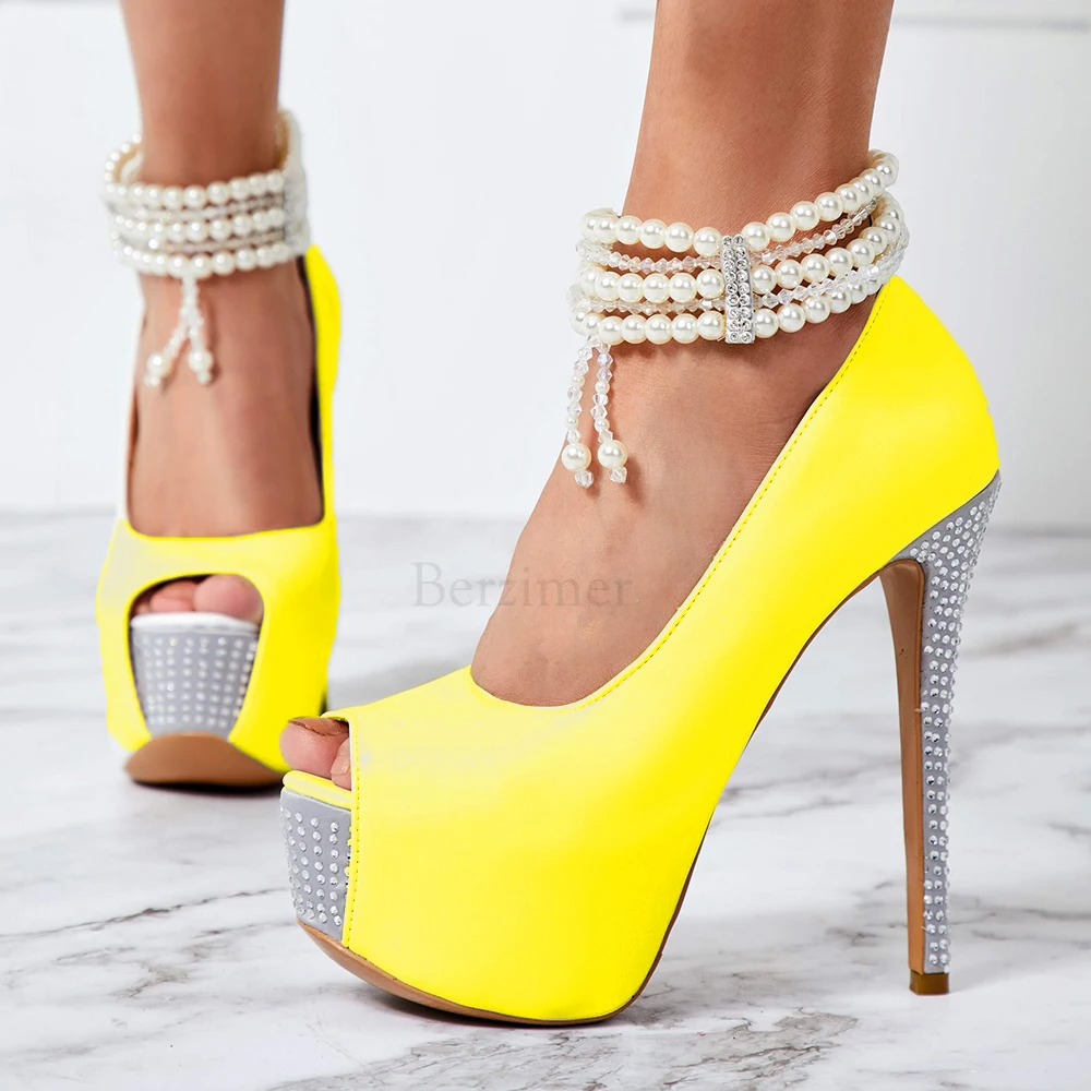 Женские туфли-лодочки на шпильке BERZIMER, с открытым носком, со стразами, на платформе, с жемчугом, большие размеры 50, 51, 52