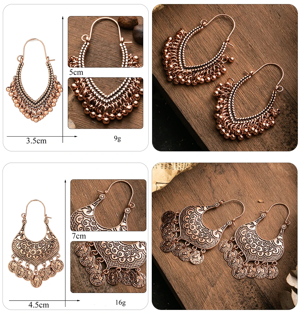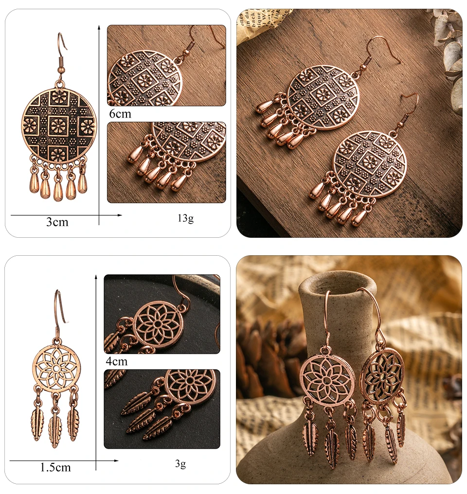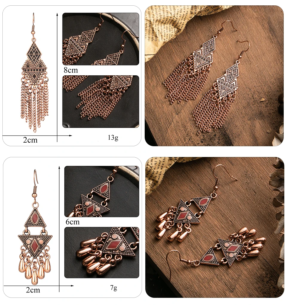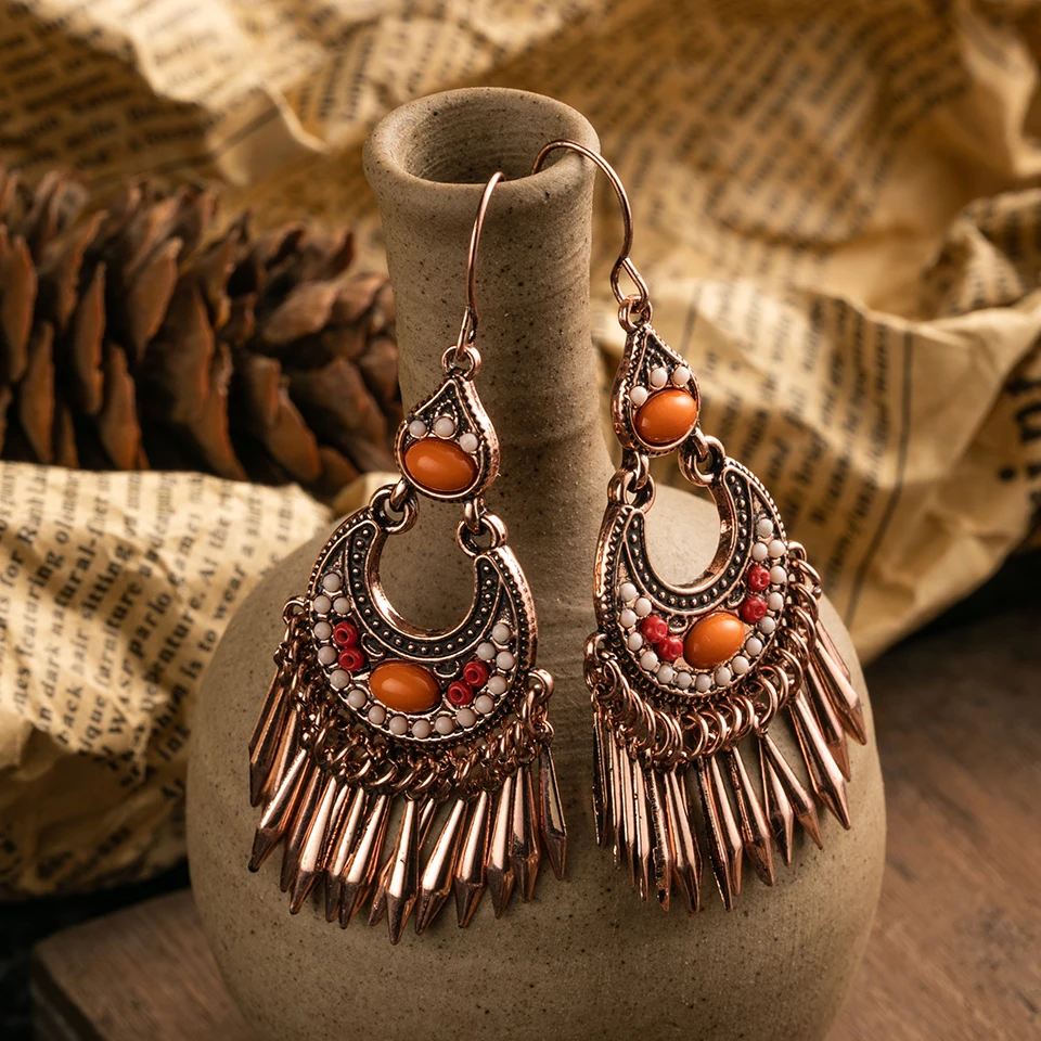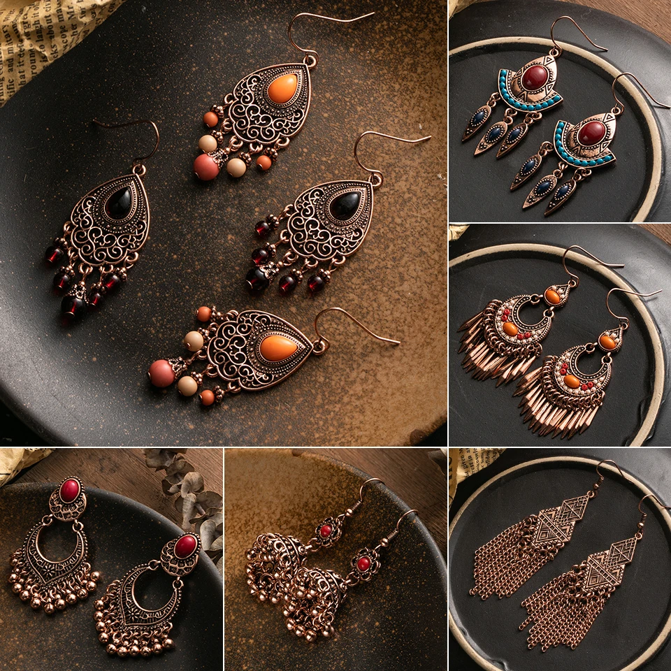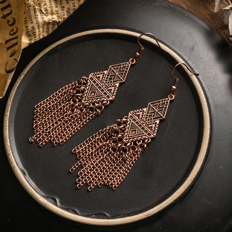 Женские Винтажные висячие серьги в стиле бохо, этнические висячие серьги цвета розового золота в индийском стиле, эффектные украшения, аксессуары, 2022