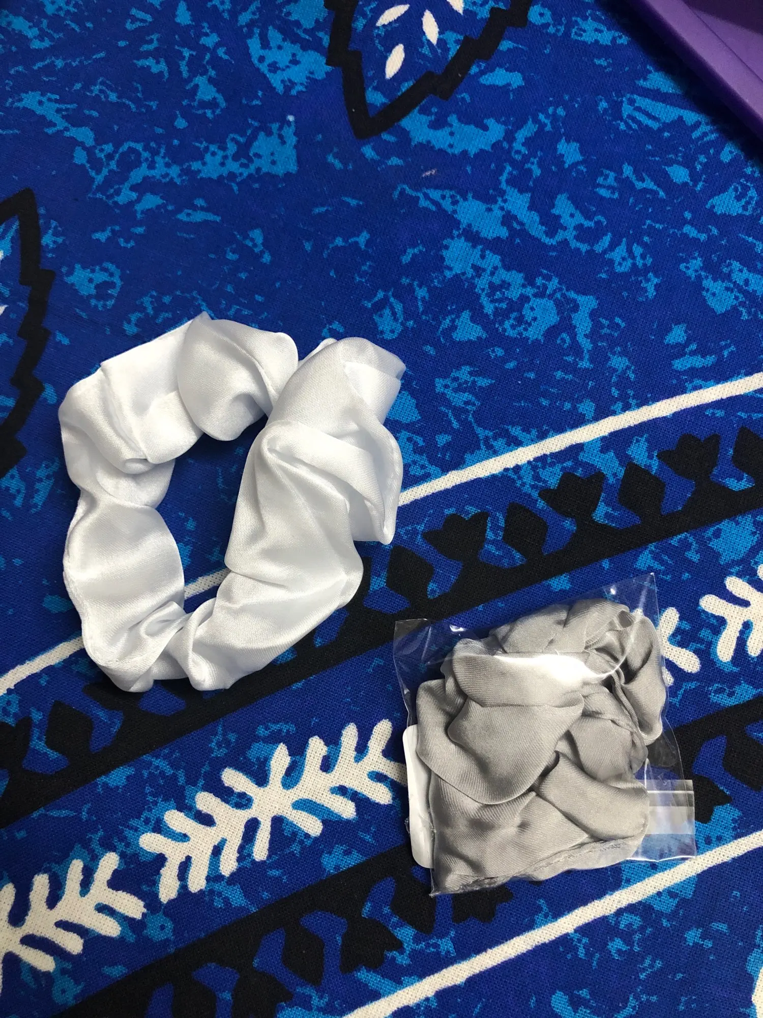 Резинка как на фото, материал похож на полиэстер. Удобна для волос, склонных к спутыванию. Я взяла для кудрявых.