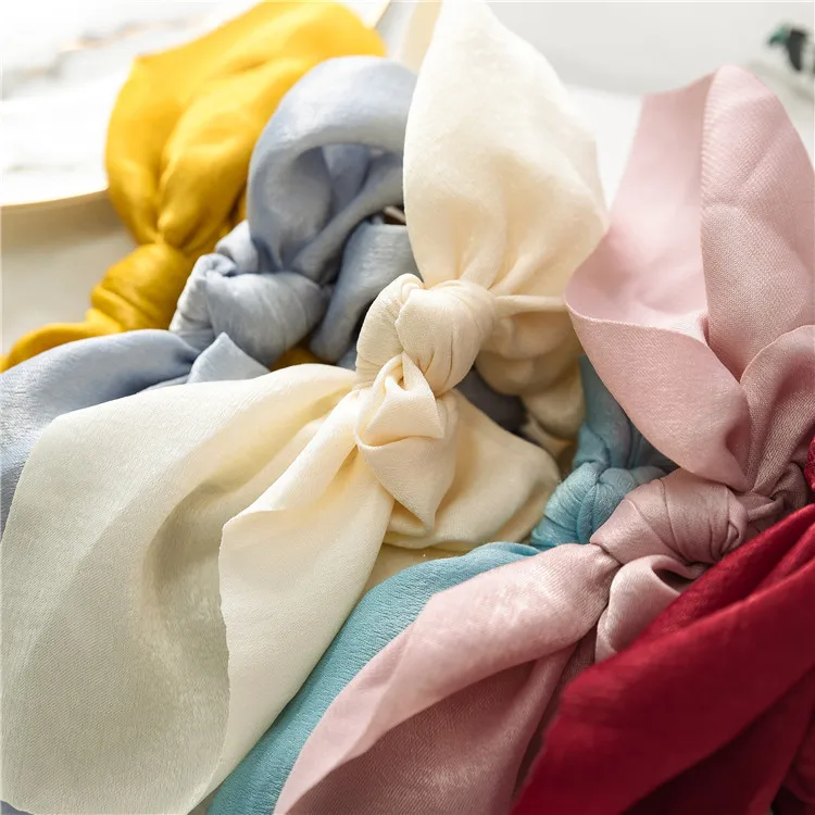 Резинки для волос с бантом женские, однотонные шифоновые эластичные резинки для фиксации волос хвостиком