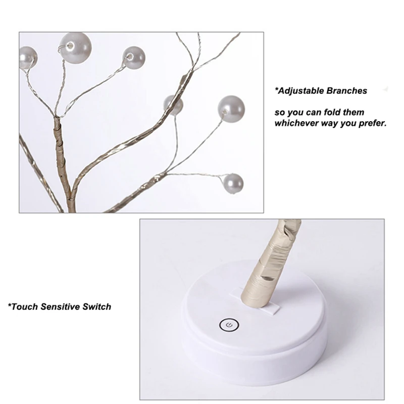 Элегантный жемчуг: 36/108 светодиодов в сочетании с золотыми веточками станут элегантным украшением дня и ночи.