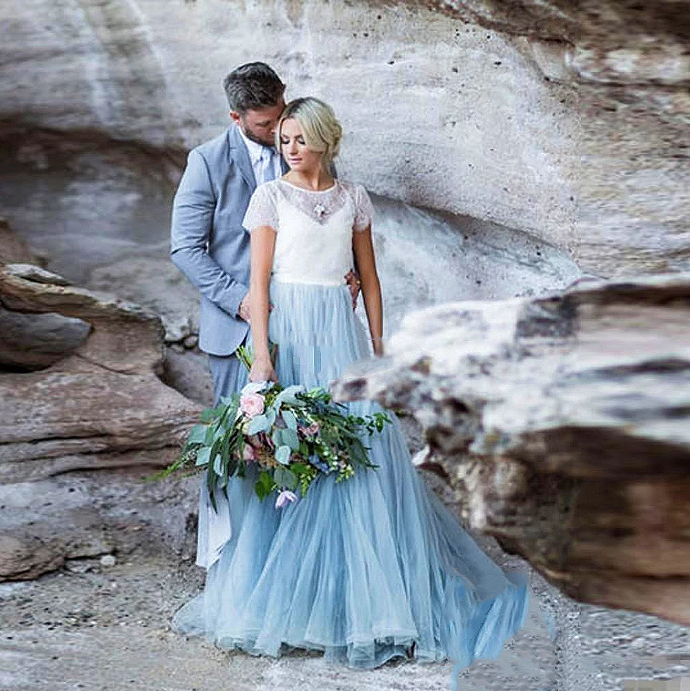 Женское свадебное платье It's yiiya, небесно-голубое кружевное платье А-силуэта с короткими рукавами на лето 2019