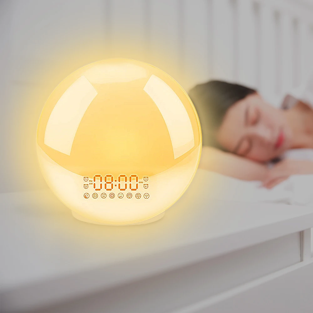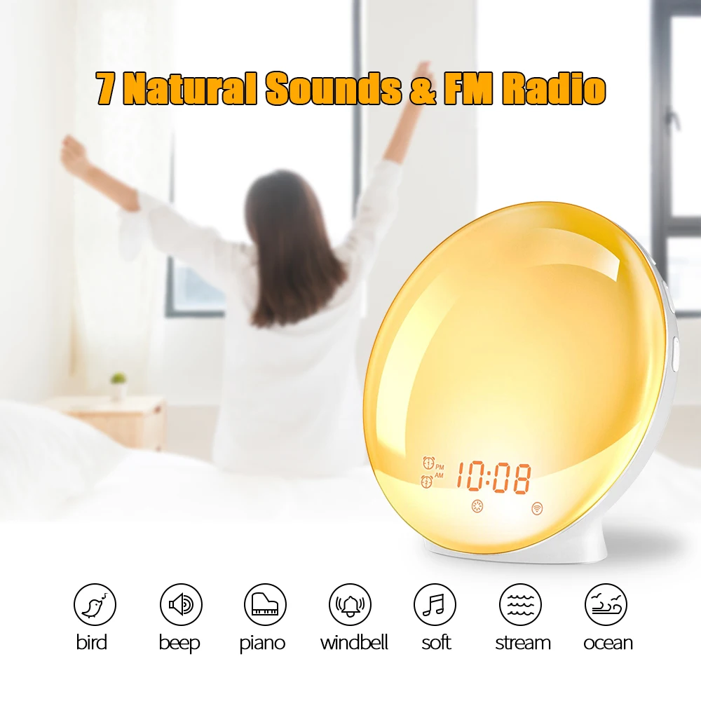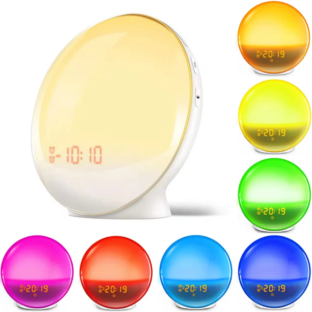 Будильник, светильник для пробуждения, цифровой будильник с функцией повтора, ночник, часы, ярсветильник свет восхода солнца с FM-радио