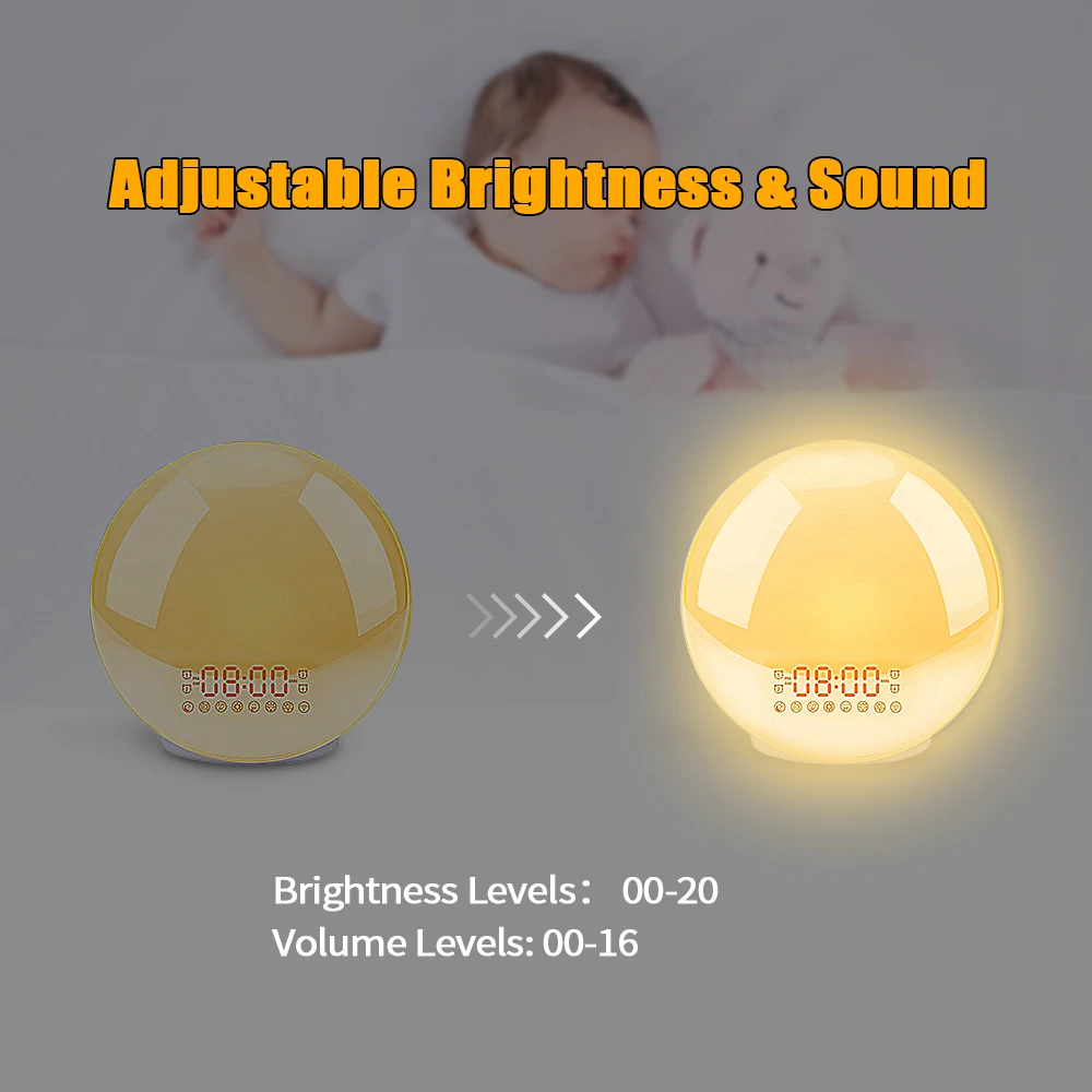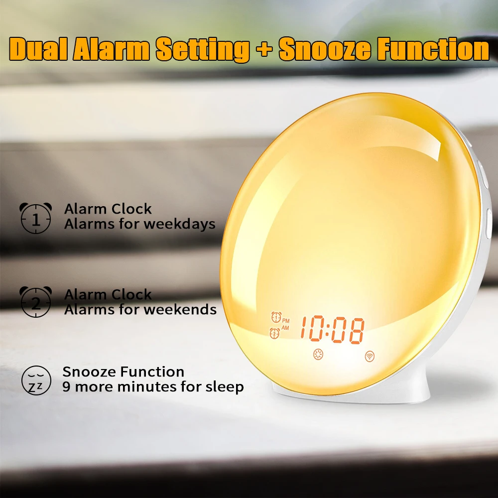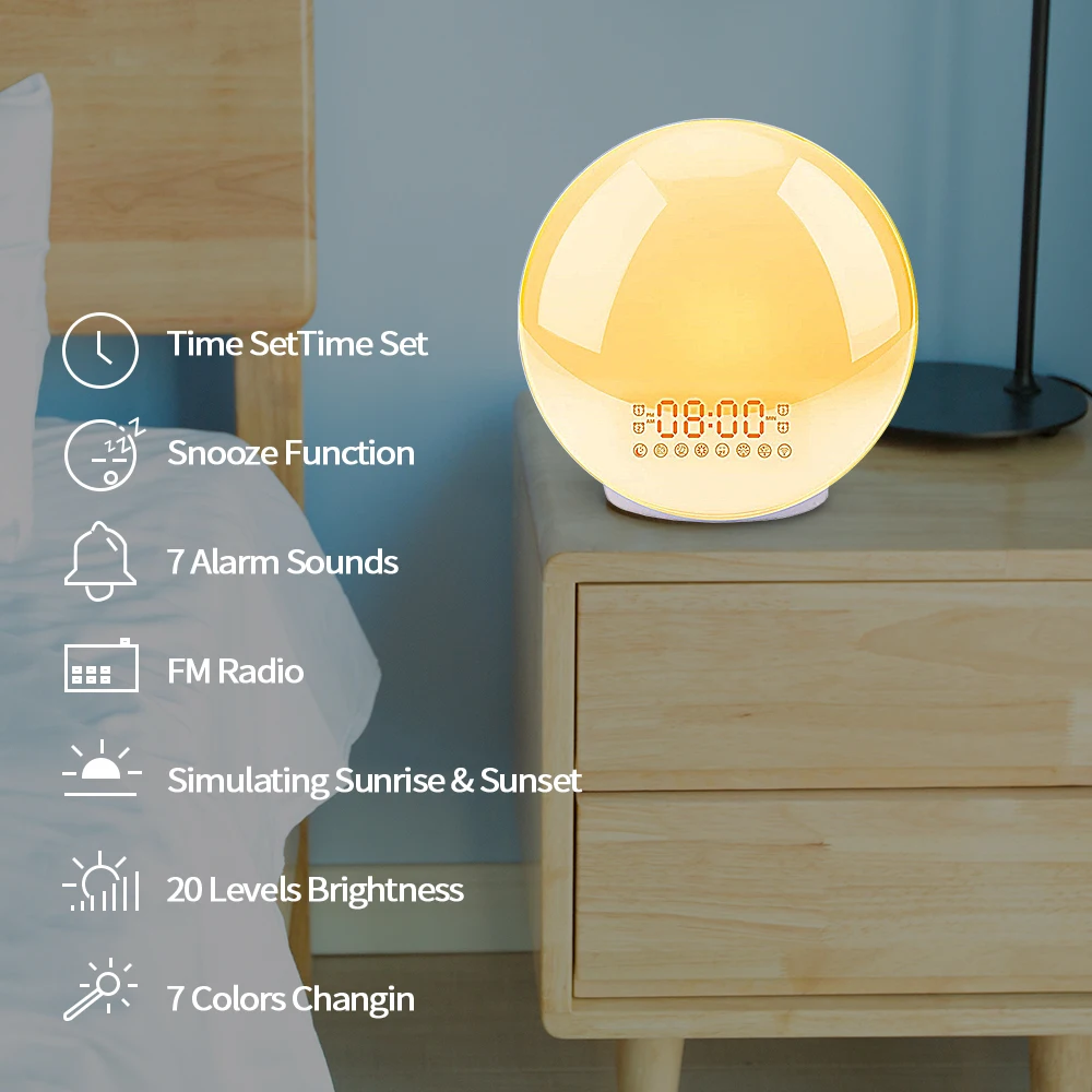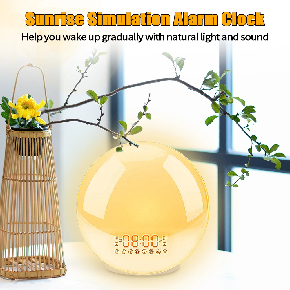 Будильник, светильник для пробуждения, цифровой будильник с функцией повтора, ночник, часы, ярсветильник свет восхода солнца с FM-радио