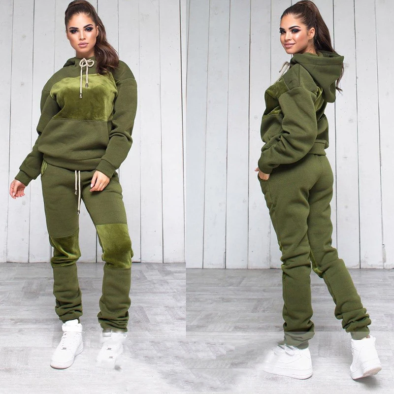 Женские спортивные комплекты для бега, зимний однотонный свитшот с ...