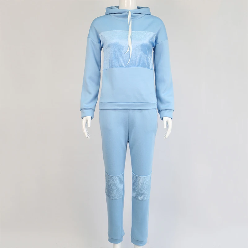 Костюм спортивный женский, флисовый, с капюшоном и штанами, на осень