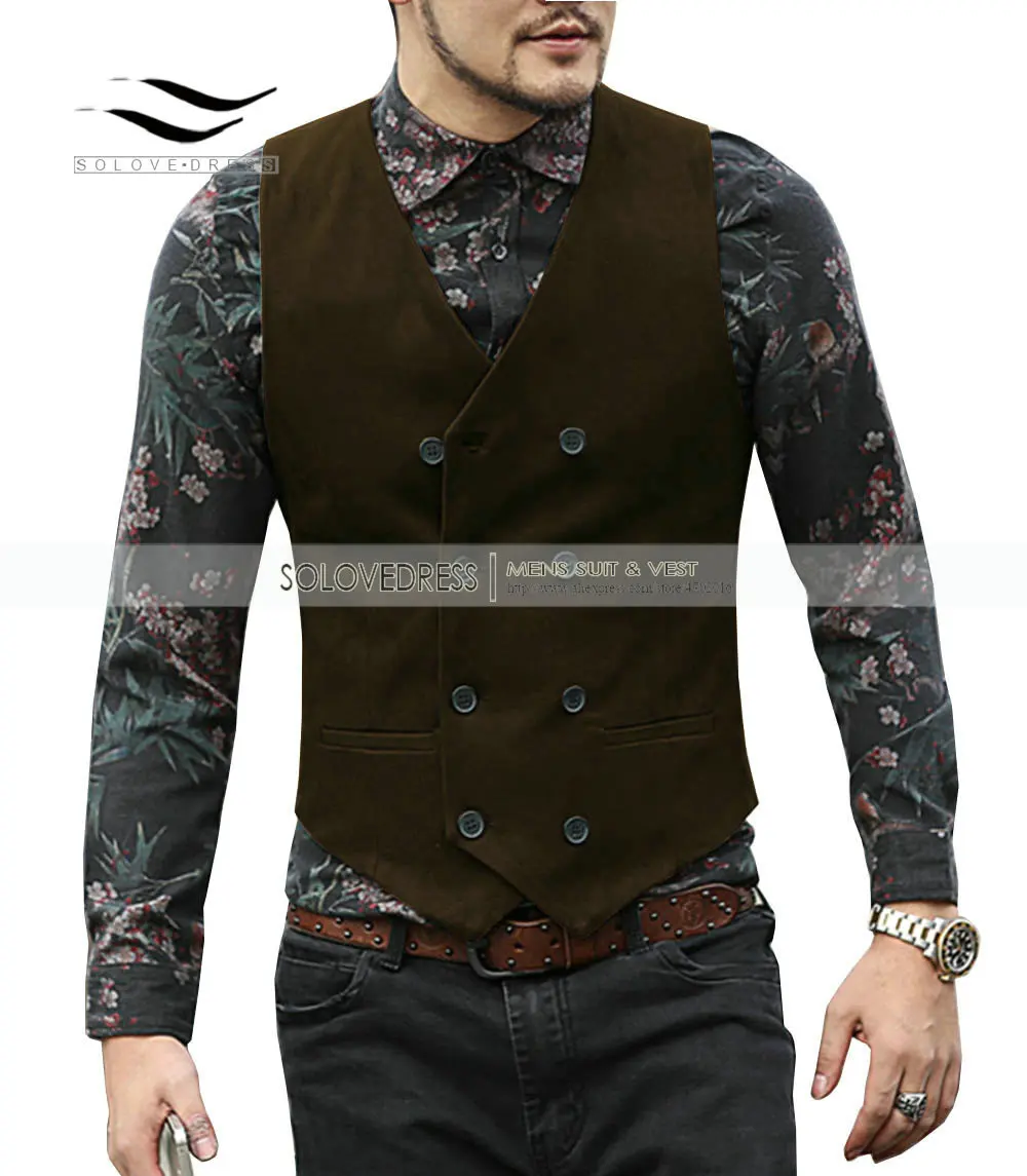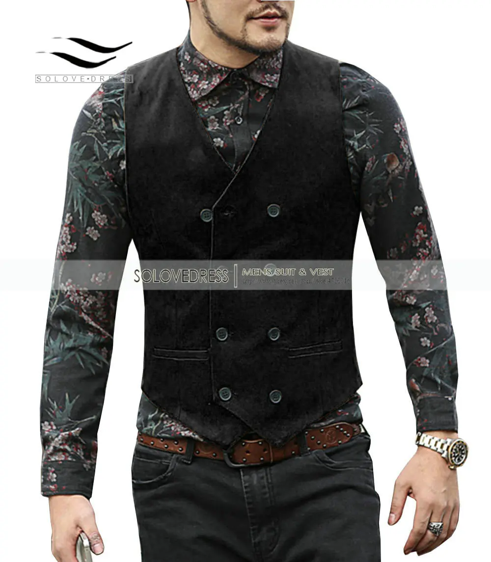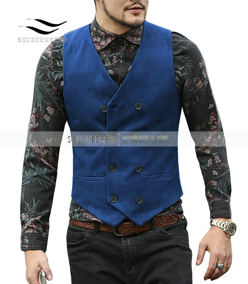 Мужской замшевый жилет, повседневный двубортный жилет с V-образным вырезом, Классическаявинтажнаяджинсовая куртка для мужчин, новинка 2020